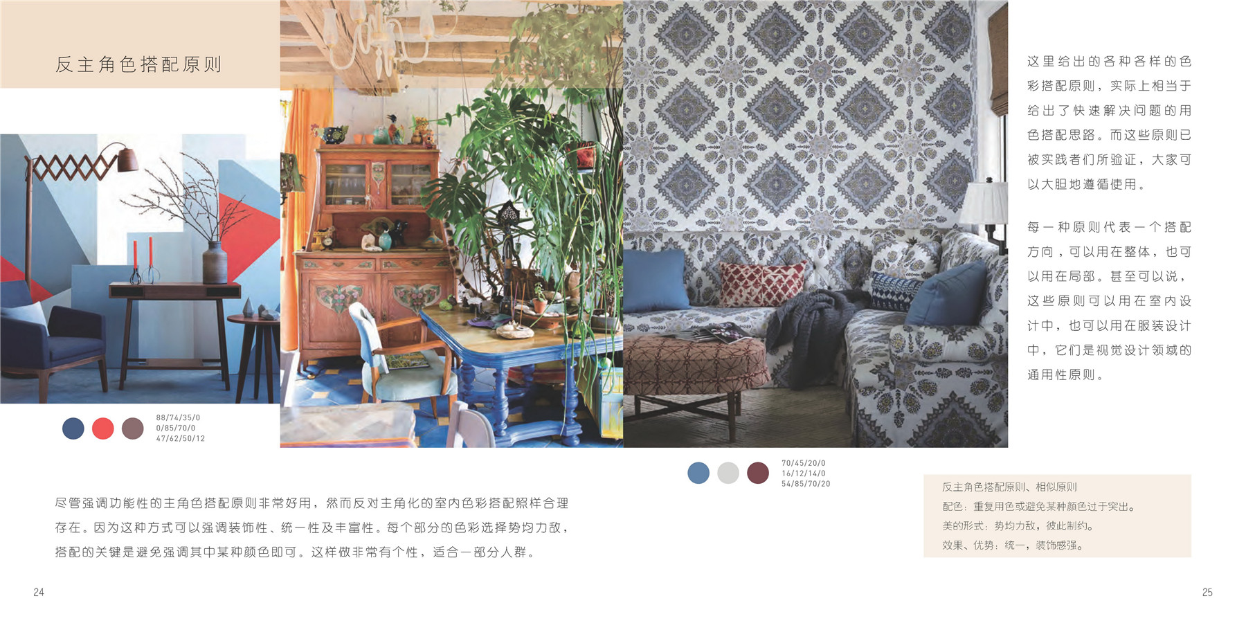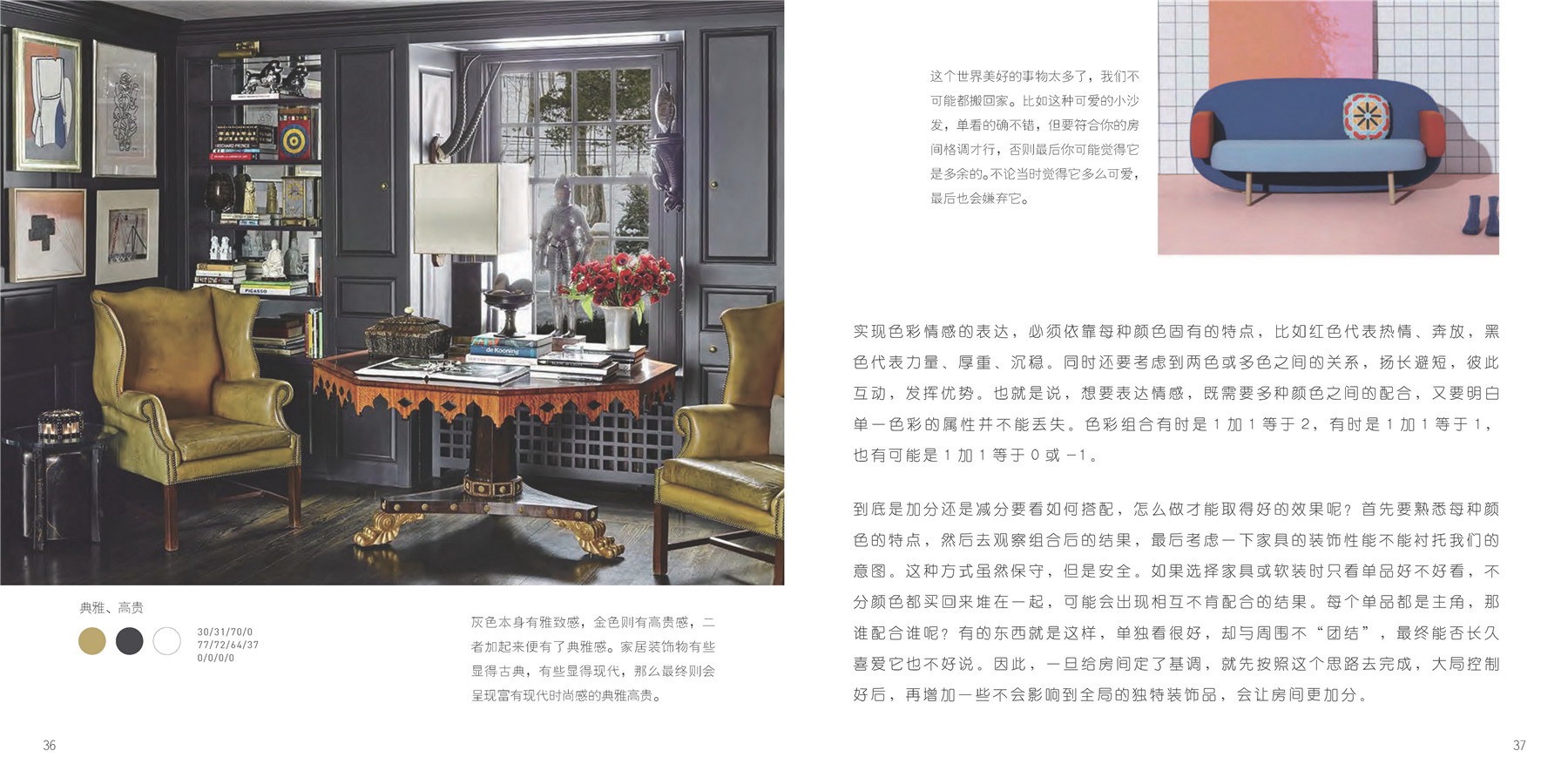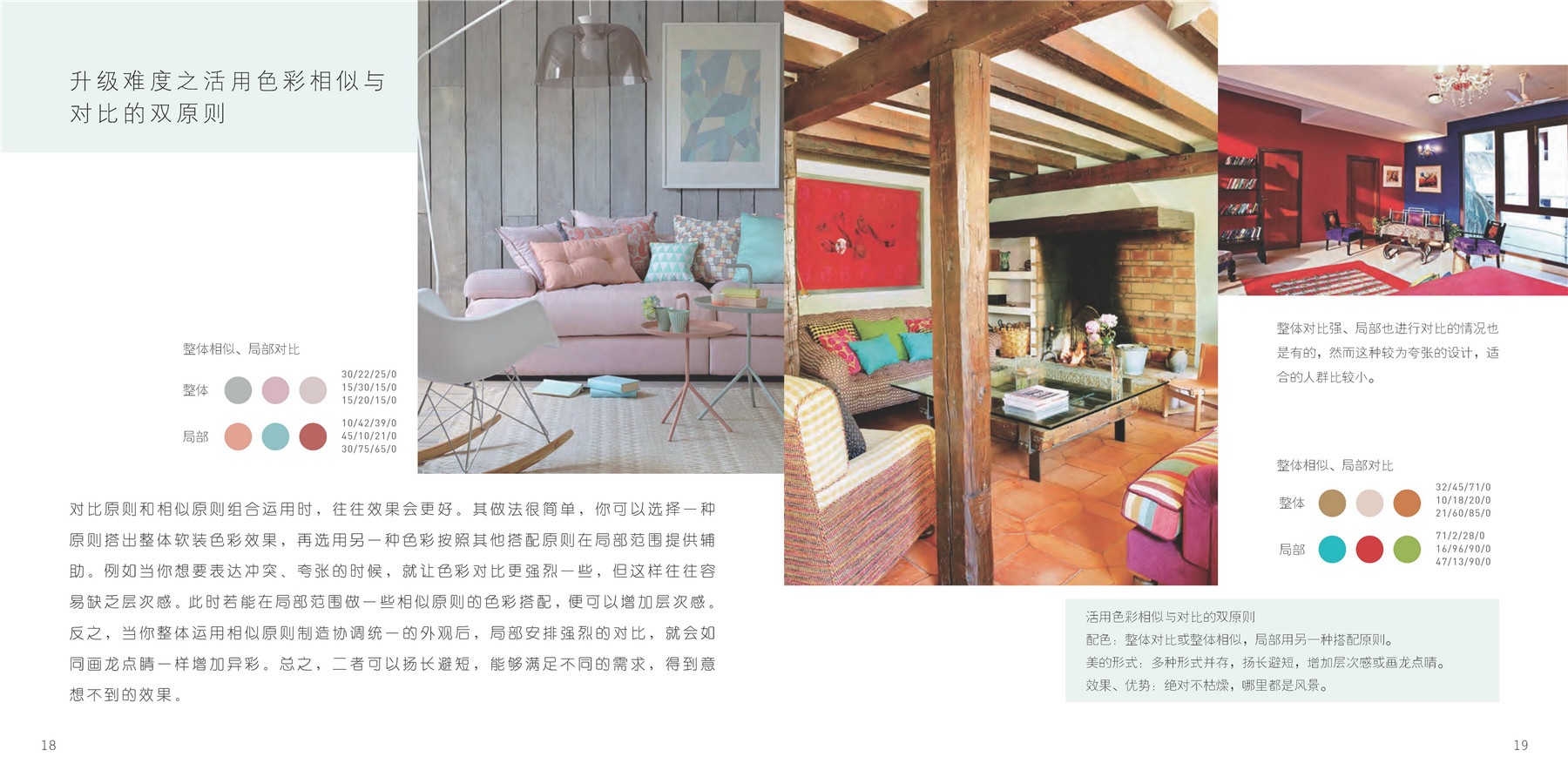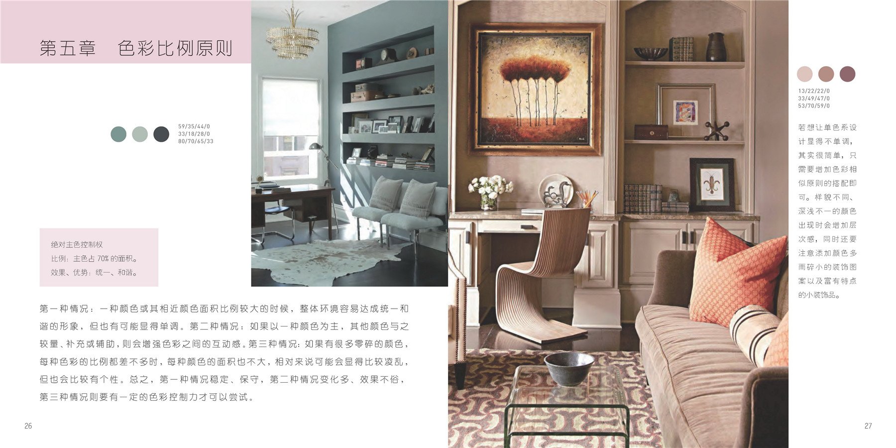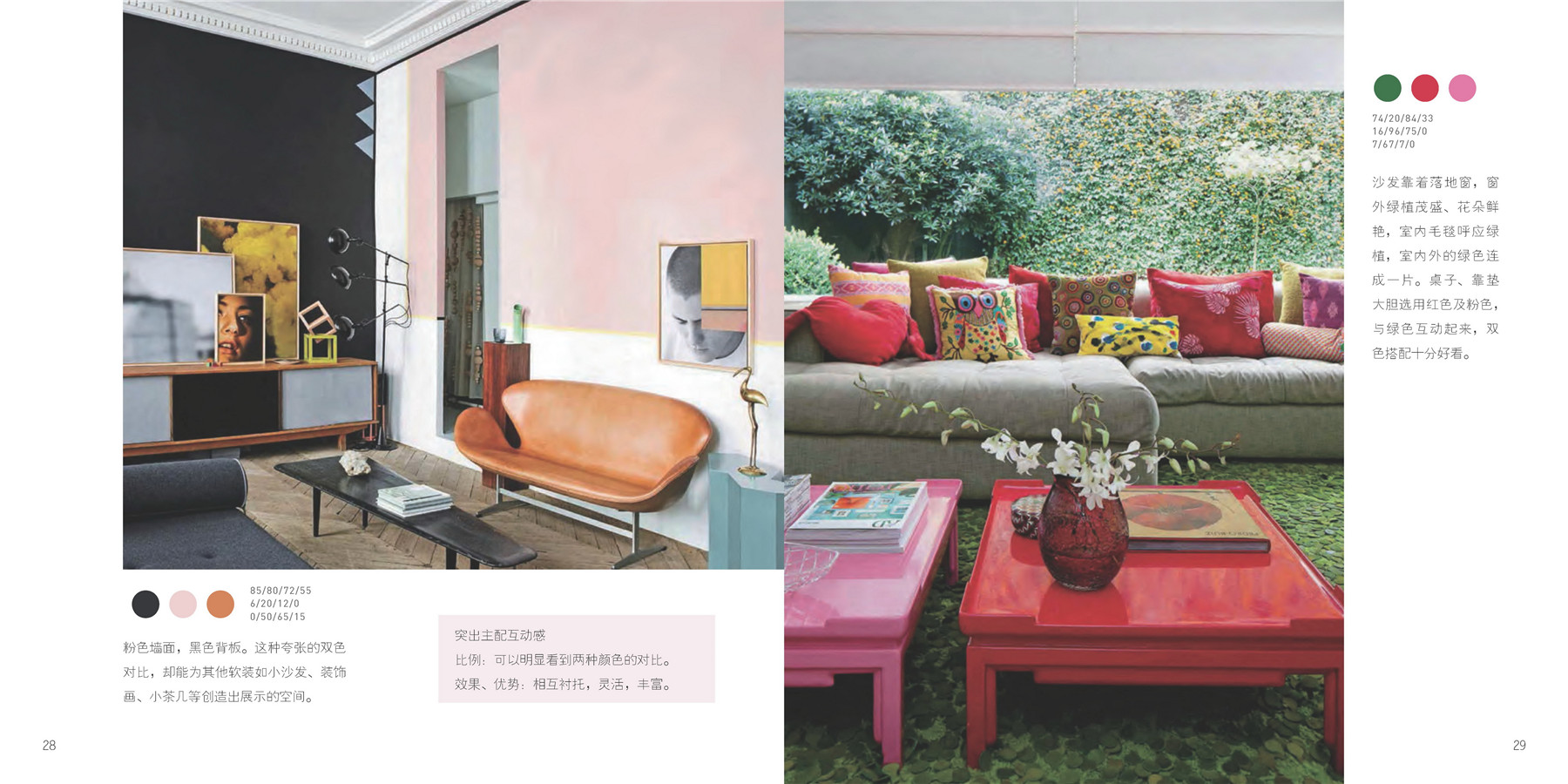 配色是室內(nèi)設計中的重要一環(huán),要做好配色,我們一方面應該掌握視覺色彩設計的總原則,一方面應該熟知室內(nèi)色彩的特殊性。本書提供的色相、色調(diào)、色彩搭配參考就非常具有室內(nèi)設計的特點。這幾年室內(nèi)設計用色越來越大膽、多元化,在注重色彩搭配的美感與個性的同時,我們也要注重色彩的功能性。色彩可以潛移默化地影響我們的情緒,還可影響身心健康。