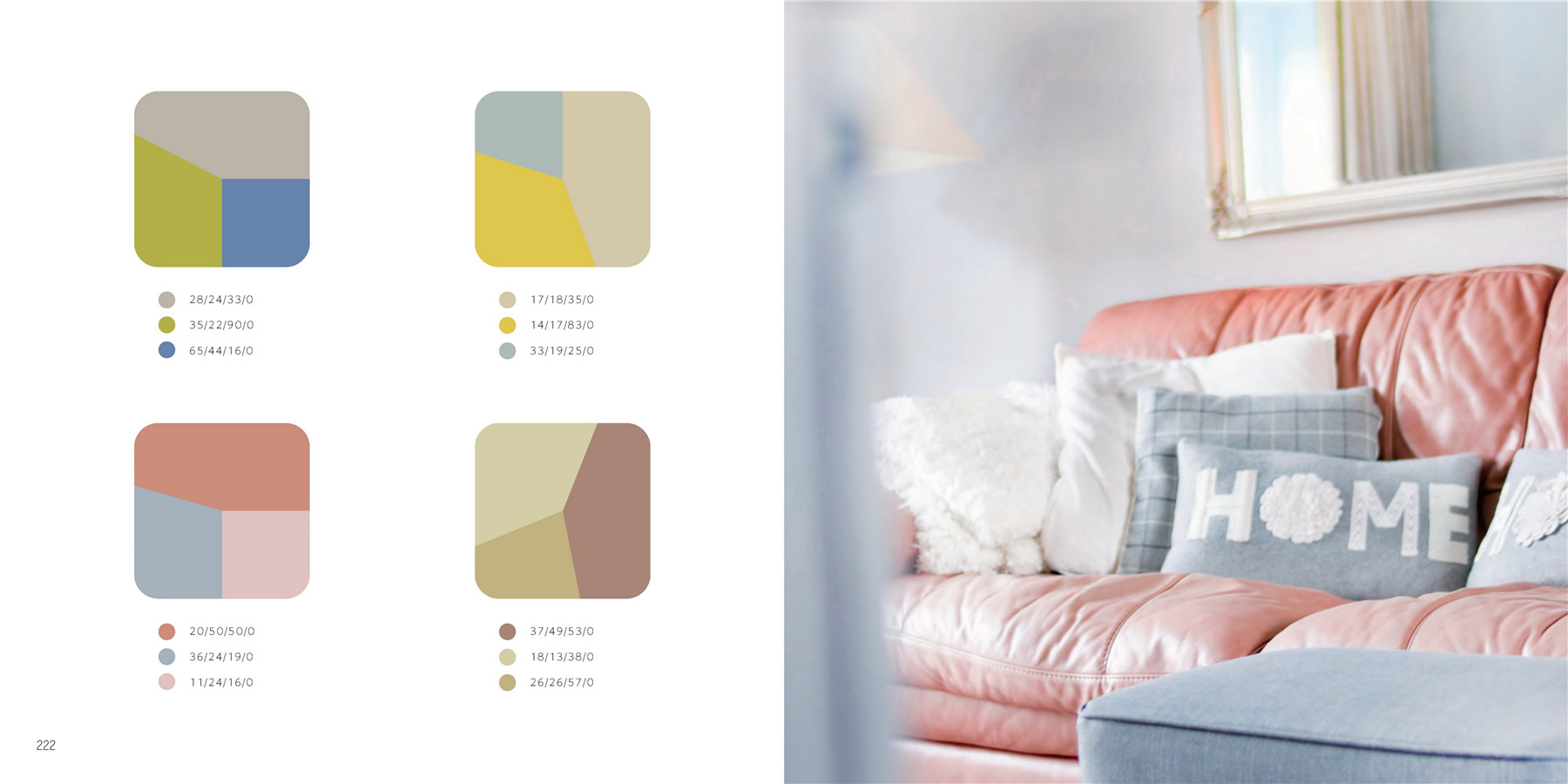 基于此,全書分為九章,分別講解室內(nèi)設計的色相與色調(diào)、色相環(huán)搭配、色彩傾向與混合搭配原則、主角色搭配原則與反主角搭配原則、色彩比例原則、色彩情感明確原則、常用的十種色相、色彩調(diào)節(jié)情緒的兩條原則,以及室內(nèi)設計常用色彩風格參考。作者從大自然、生活、流行服飾等方面獲得配色靈感,從中提取原色并搭配以詳細的場景解析,通過配色方案組合,讓讀者可進行快速查詢,分享更加高效合理的色彩搭配手法。