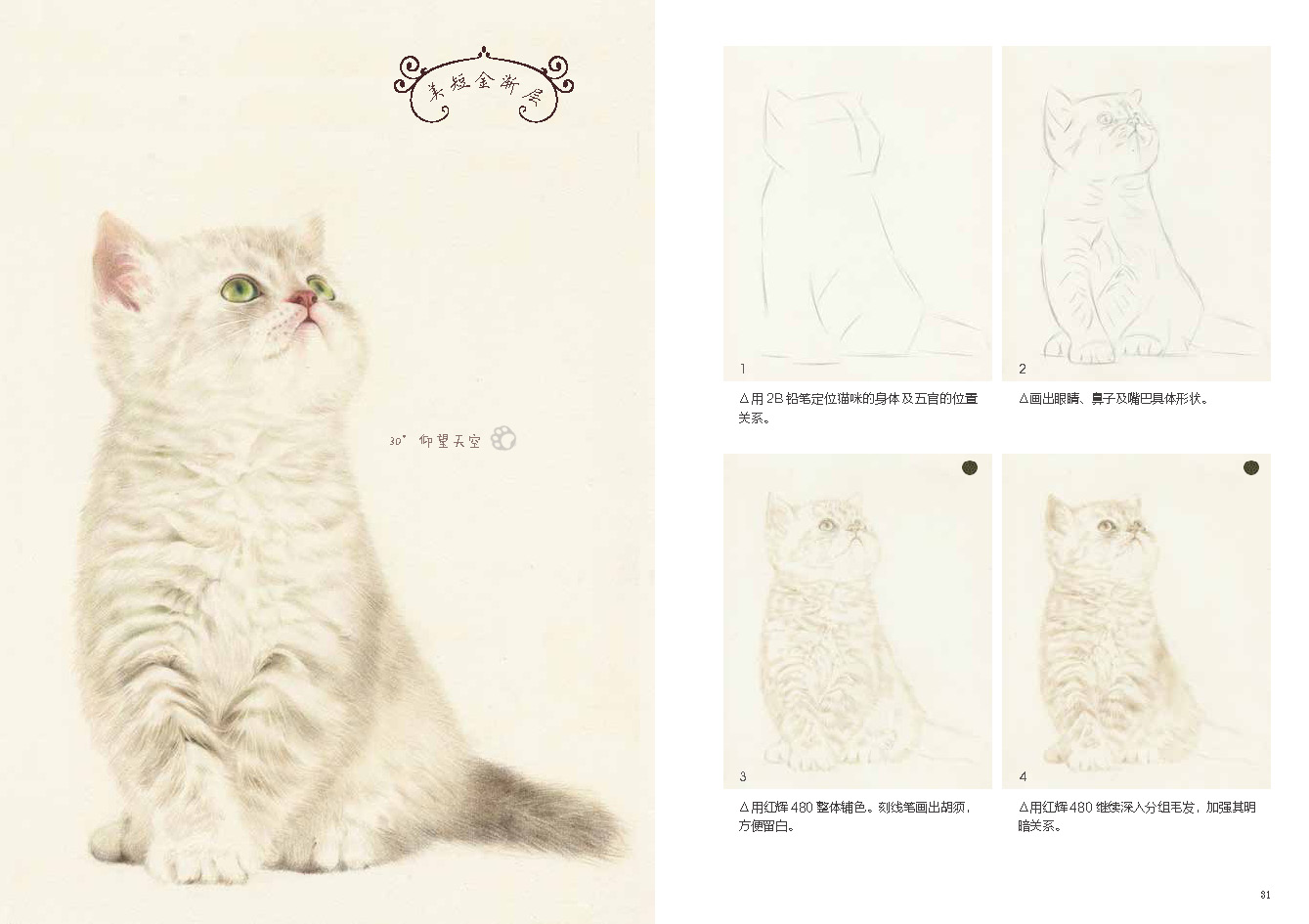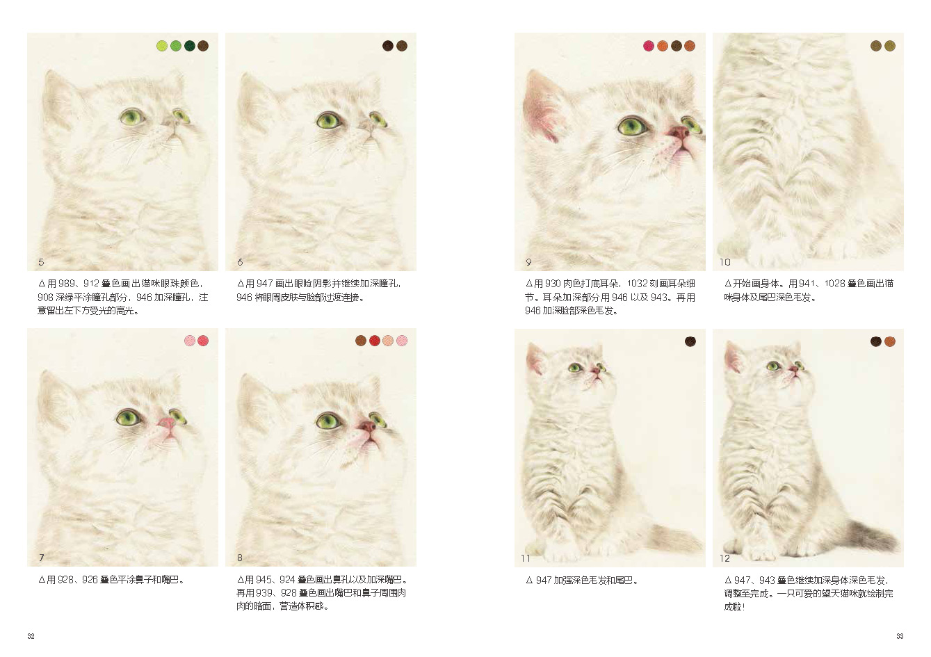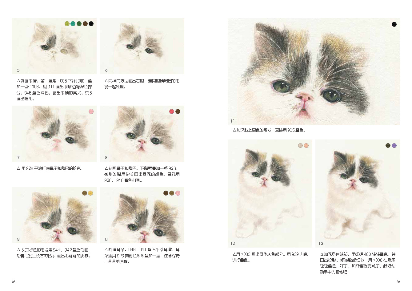 3.步驟詳盡,講解清晰,更有貓狗彩鉛技法的特征總結(jié)和技巧分享。