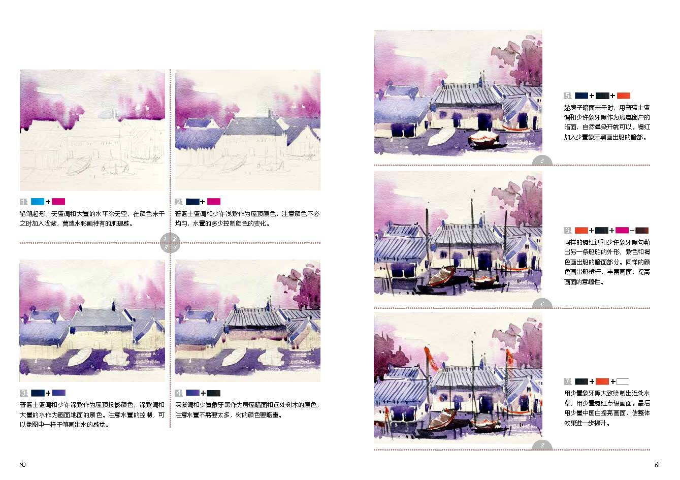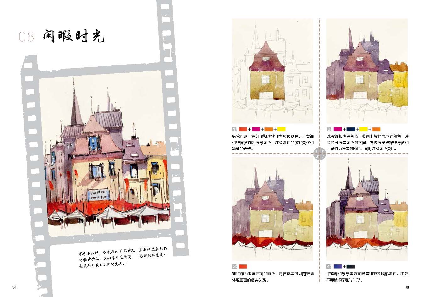 7.只需把握畫面的“色彩+形狀”,30分鐘就能完成水彩建筑作品。