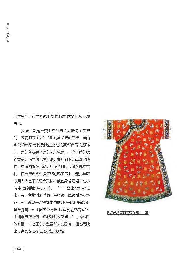 你還會知道《紅樓夢》中香菱拖在泥中的石榴裙是如何的艷麗;《甄嬛傳》中“縹色玉柔擎”中的縹色是怎樣的顏色;忠肝義膽的紅血化成的碧玉,稱為“碧血丹心” ;“練”字在古代亦當作顏色名詞使用,例如練衣指白色的布衣,練巾是白頭巾;書中還會講述“信口雌黃”中“雌黃”的由來,原來雌黃是古時的修改液;為什么畫稱作“丹青”。它還是一部很生動的歷史記載,皇族的衣服不止是黃色,如茜紅色是漢代之前皇帝的御用服色,唐高宗時赭色是皇帝的專用服色,而隋文帝楊堅選取柘黃袍為御用服色。