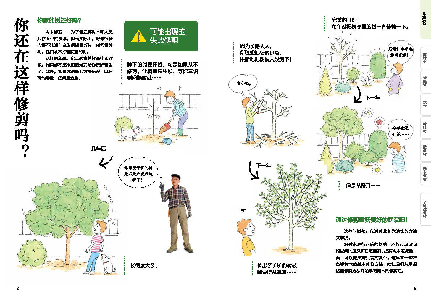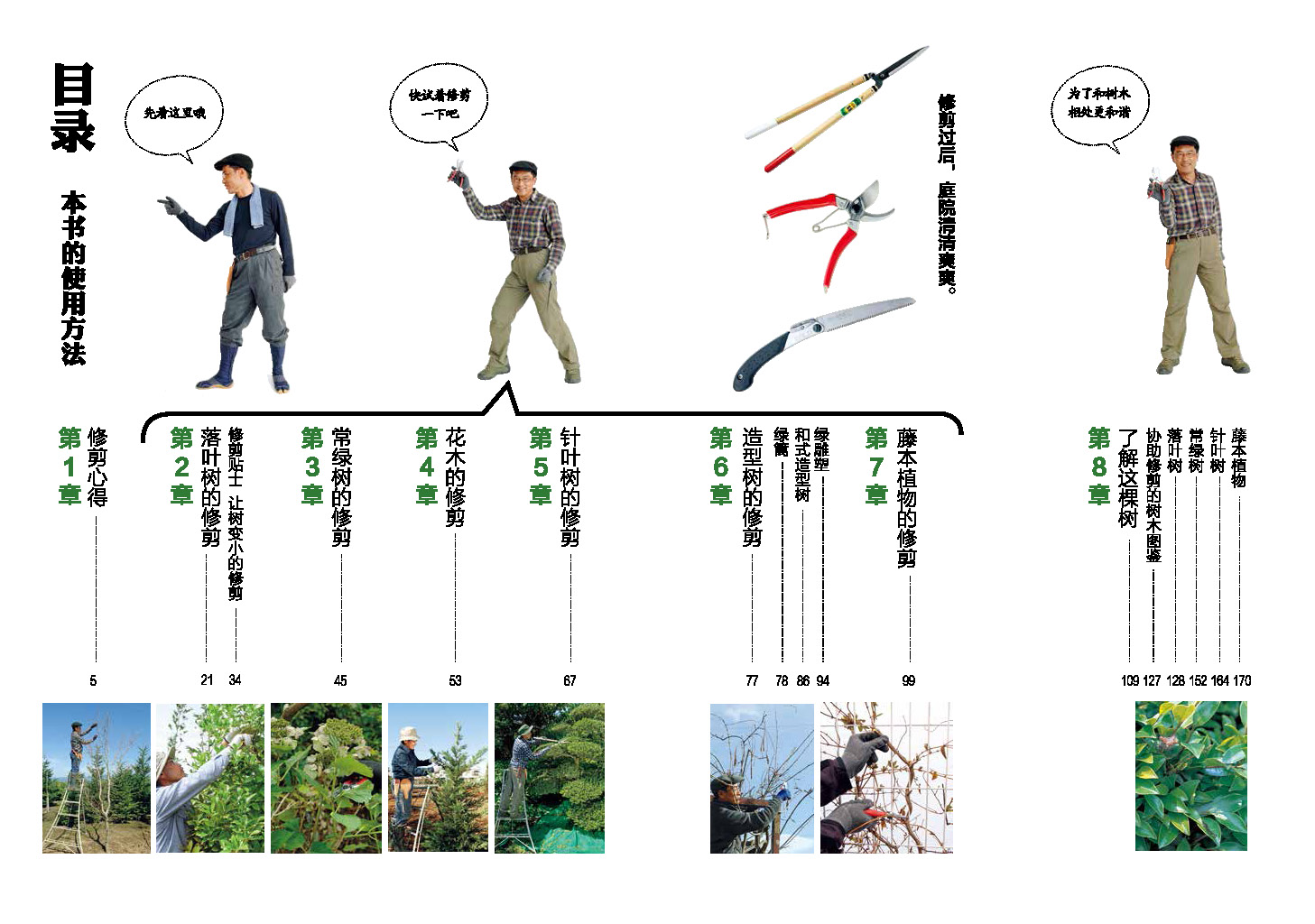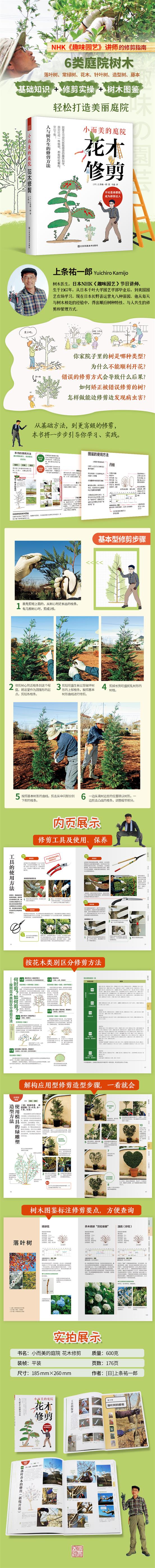 本書以面向普通園藝愛好者的花木修剪技巧為主要內(nèi)容,以實景圖片和趣味插畫展示花木修剪手法。全書共分為6章,分別介紹了落葉樹的常用修剪技法、常綠樹常用修剪技法、花木常用修剪技法、針葉樹常用修剪技法、造型樹修剪技巧及藤本植物的修剪方法。