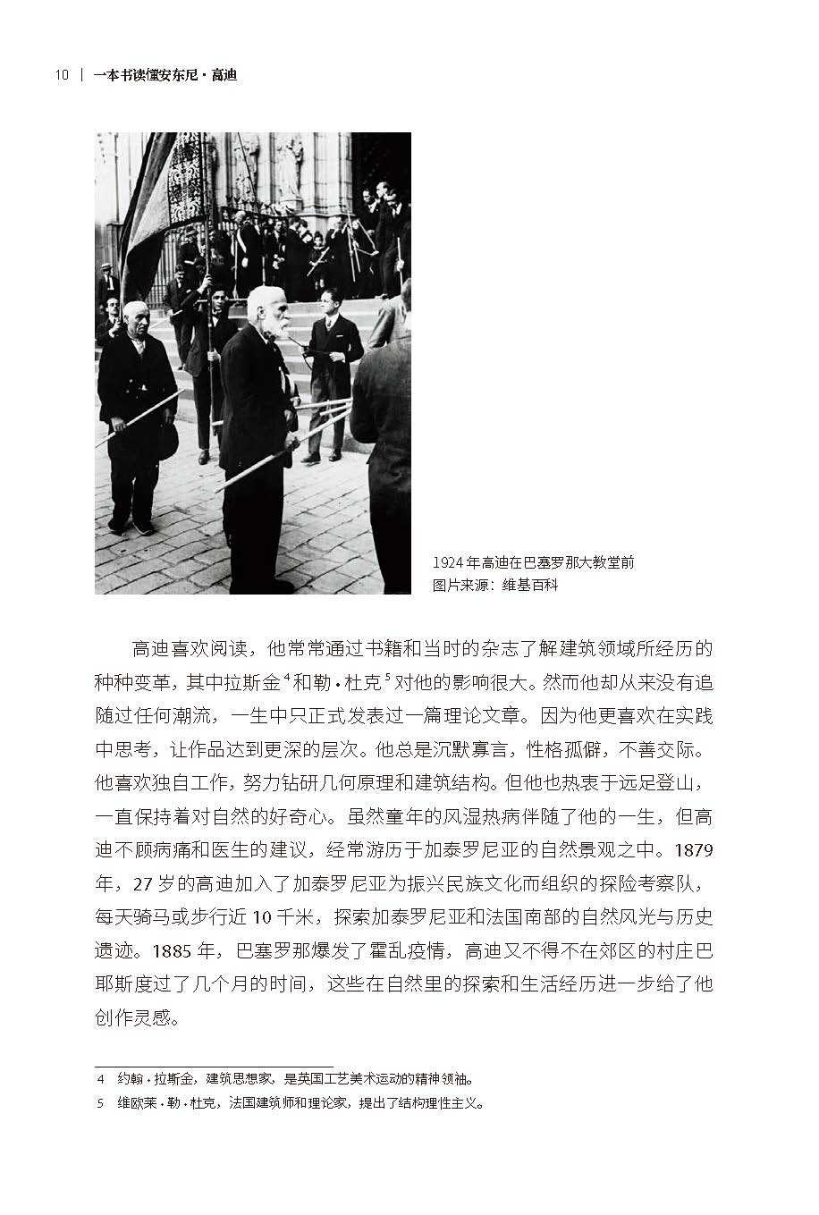 本書的作者用了五年的時(shí)間,追隨高迪的足跡,在他曾經(jīng)學(xué)習(xí)過的建筑學(xué)校收集資料,在他留下最多作品的城市實(shí)地考察,匯集成本書。無論是作為學(xué)習(xí)用書、圖片資料集還是建筑旅行攻略,各類讀者都能在該書中有所收獲。