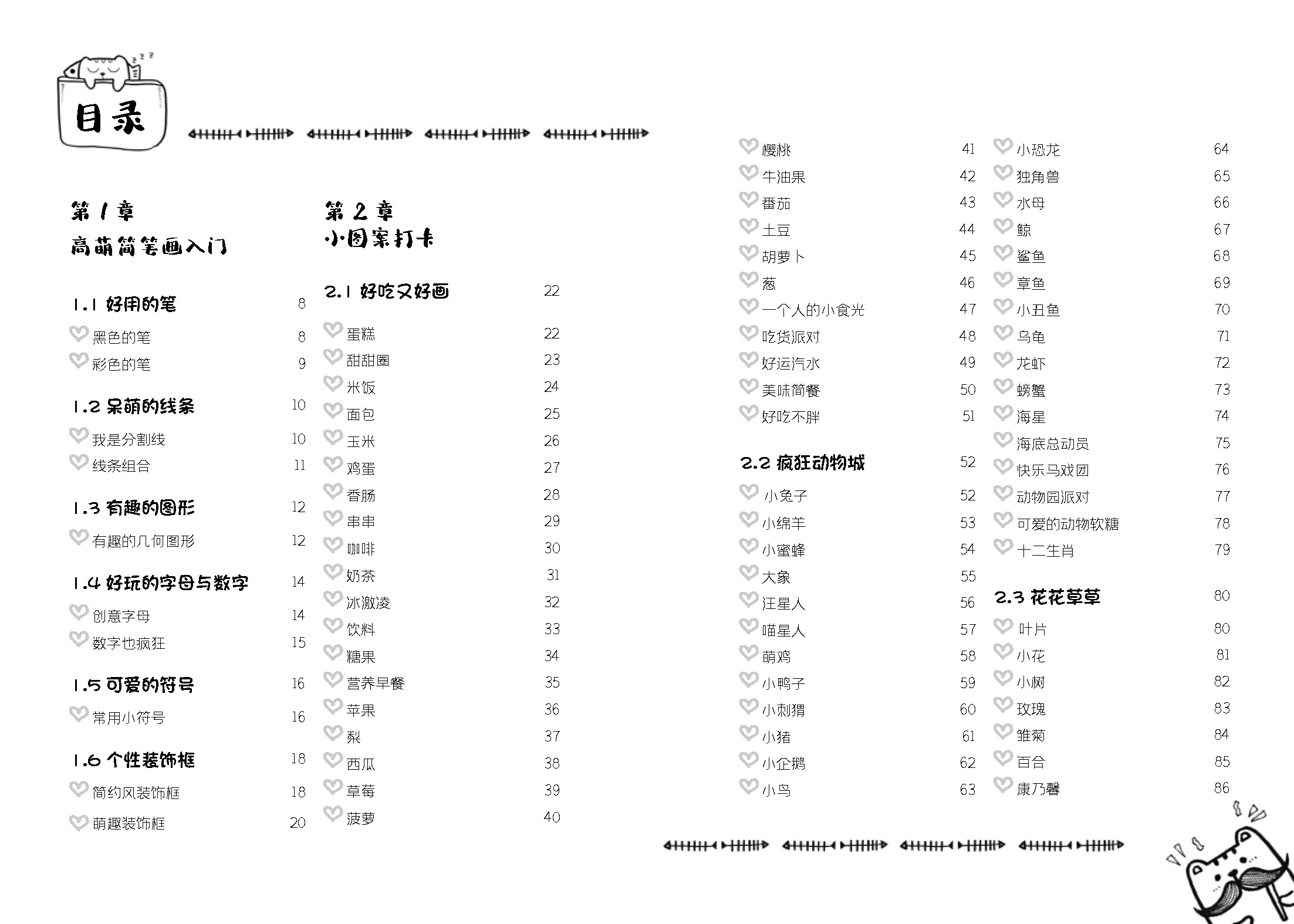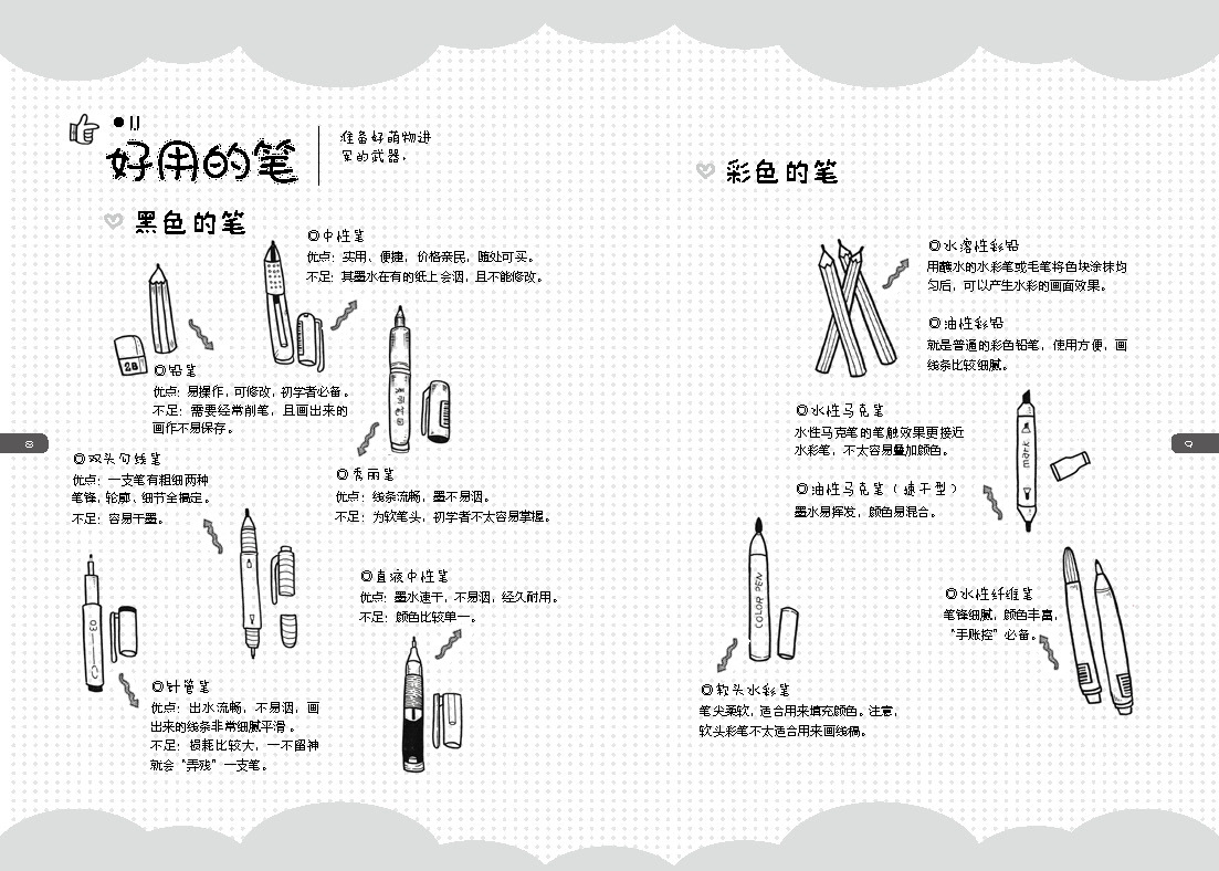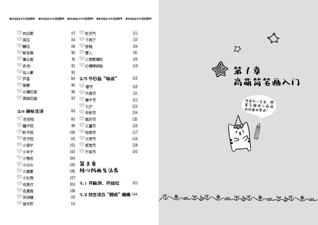 4.作者獨(dú)有的三步教學(xué)總結(jié)和技巧分享。可以讓讀者舉一反十,用一支筆就可以自由創(chuàng)作可愛(ài)手繪。