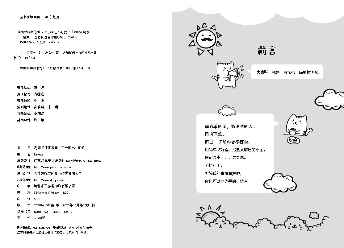 本書(shū)是由喵星插畫(huà)師Lemao(樂(lè)貓)傾力打造的一本融教學(xué)與玩趣為一體的簡(jiǎn)筆畫(huà)教程,不僅可以作為繪畫(huà)啟蒙圖書(shū),也適合繪畫(huà)愛(ài)好者與手賬愛(ài)好者作為素材集來(lái)閱讀。