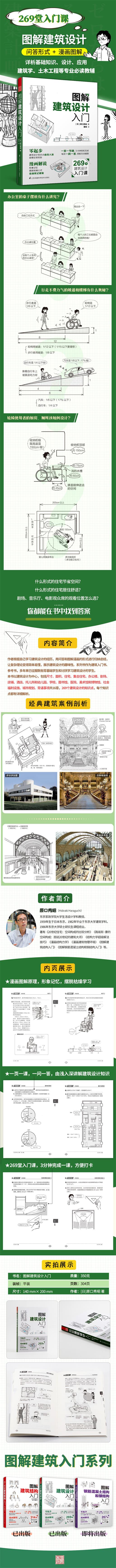 作者根據(jù)自己學(xué)習(xí)建筑設(shè)計的經(jīng)歷,用問答和圖解漫畫的形式進(jìn)行歸納總結(jié),讓復(fù)雜理論變得簡單易懂,展示建筑設(shè)計的趣味性。系列書作為建筑入門書、參考書,多年來已征服數(shù)批零基礎(chǔ)學(xué)生和討厭學(xué)習(xí)建筑設(shè)計的學(xué)生。