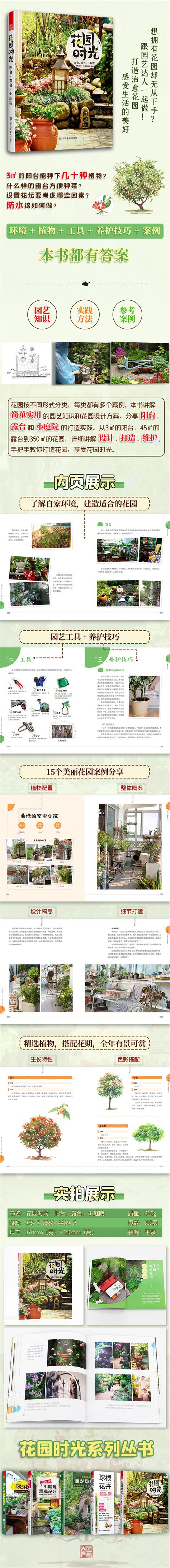這是一本園藝生活書,書中按不同的花園形式進(jìn)行分類,含括了陽臺、露臺和小庭院的打造要點(diǎn),且每一類花園都有多個(gè)案例分享。案例中詳細(xì)介紹了花園設(shè)計(jì)、打造、維護(hù)以及花園生活等知識,向讀者展現(xiàn)了一段又一段美好的花園時(shí)光。