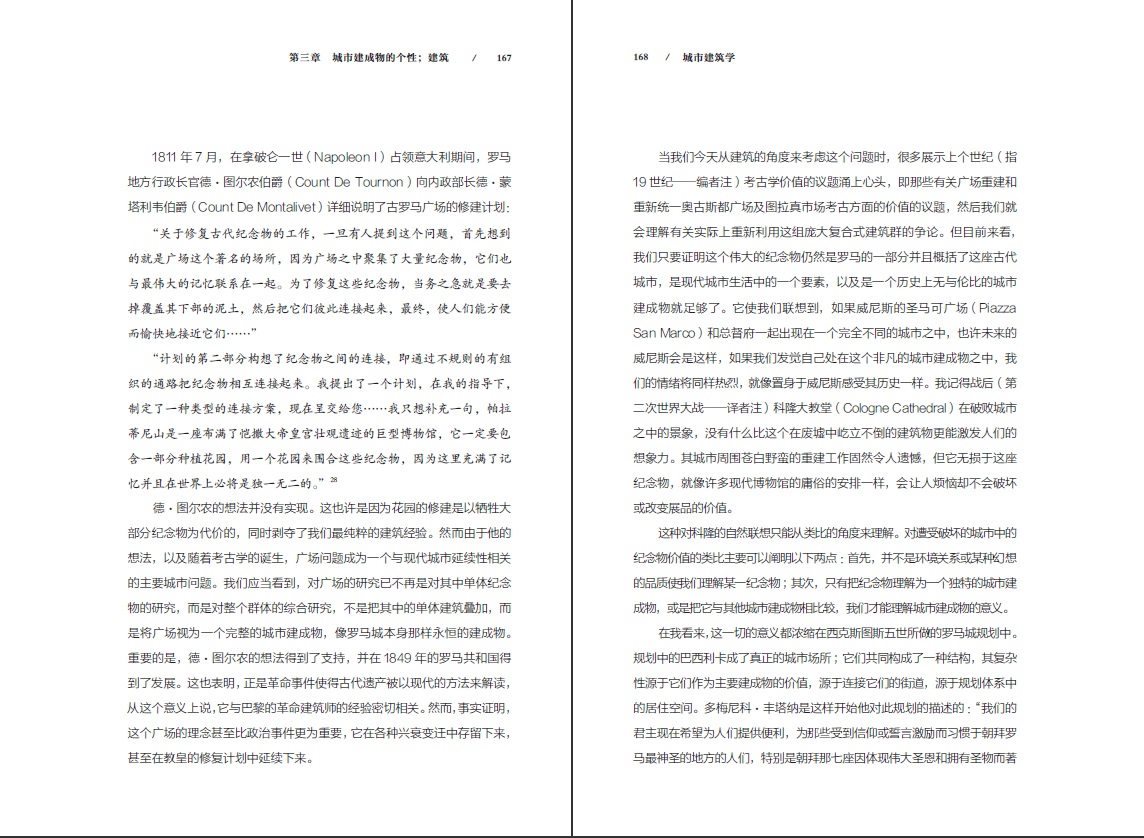 《城市建筑學(xué)》一書初版時羅西只有35歲,但書中所探討的是其畢生思考與研究的課題。此書通讀起來很難梳理出一個明確的邏輯結(jié)構(gòu),其內(nèi)容更像是一場靈感迸發(fā)的講演,然而它的魅力也正在于此,半個世紀(jì)以來吸引無數(shù)建筑師爭相閱讀與贊嘆的,正是書中隨處閃爍著的作者思考的智慧之光。