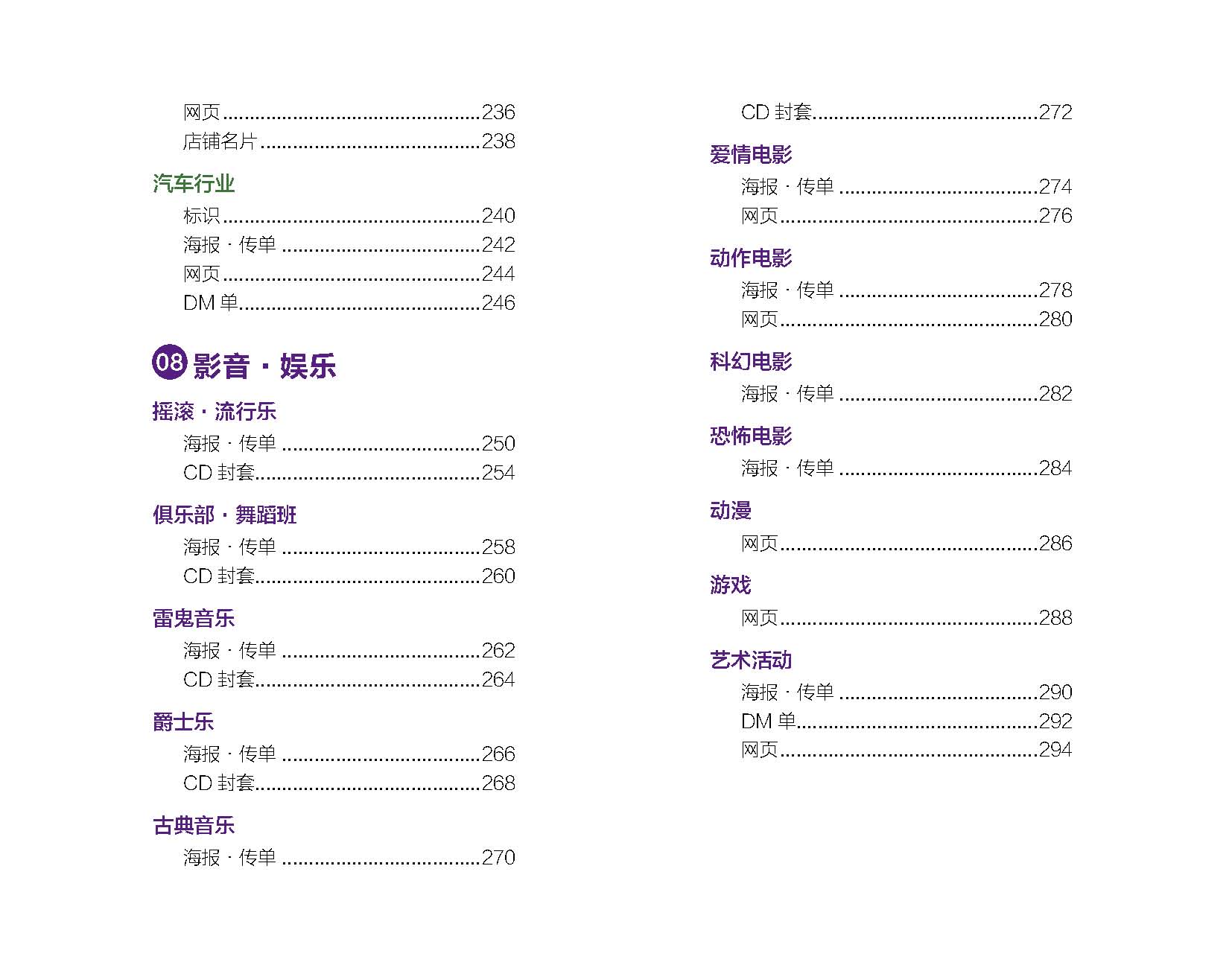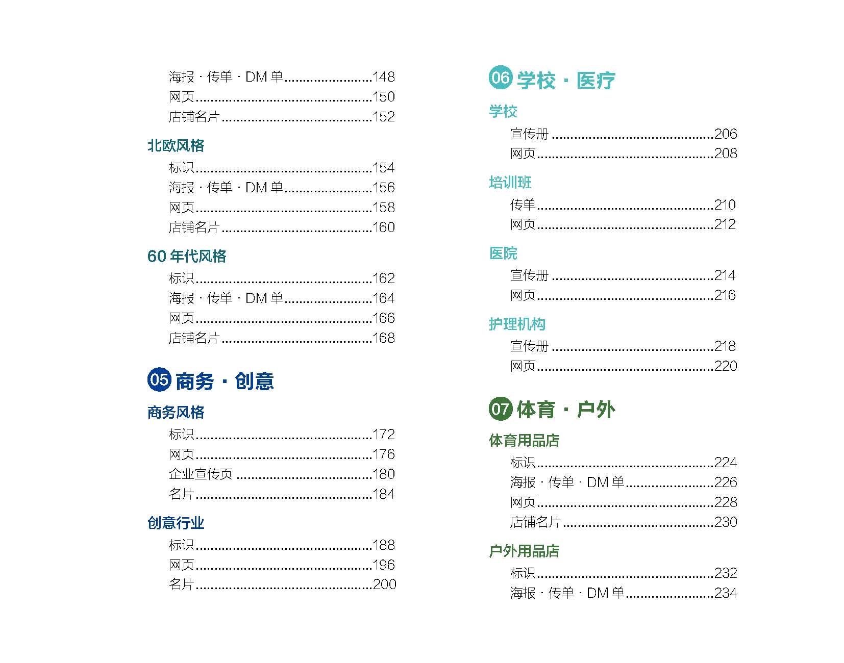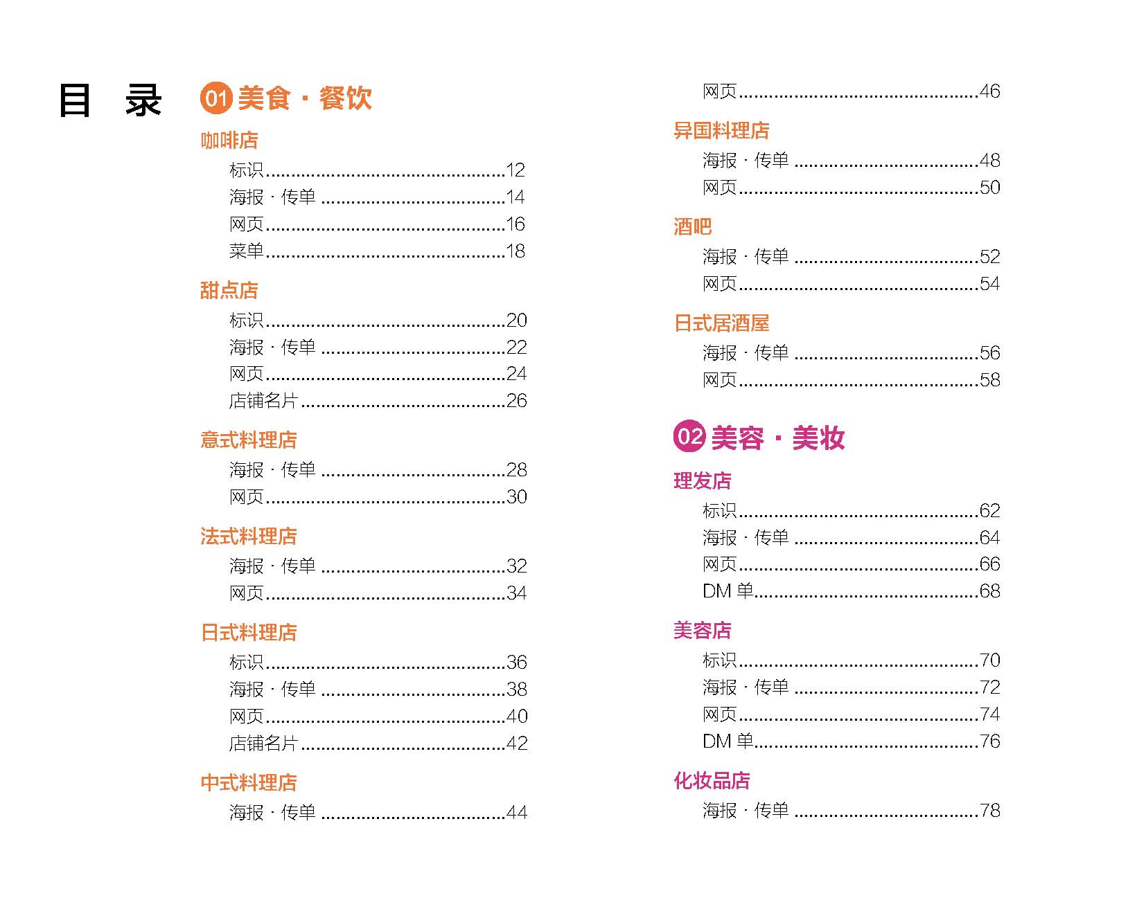 書中將主題分為 8 大類:美食?餐飲、美容?美妝、時(shí)尚?服飾、家居?雜貨、商業(yè)?創(chuàng)意、學(xué)校?醫(yī)療、運(yùn)動(dòng)?戶外、影音?娛樂。不同主題共包含標(biāo)識(shí)、海報(bào)、傳單、DM、網(wǎng)頁、名片、宣傳冊(cè)、CD 封面、包裝設(shè)計(jì)、簡介等 12 種配色類型。參照專業(yè)設(shè)計(jì)師接單時(shí),常見的類型、職業(yè)種類精選而成,案例完善且保羅萬象,可隨心所欲地應(yīng)用。是您最完備的配色參考書。