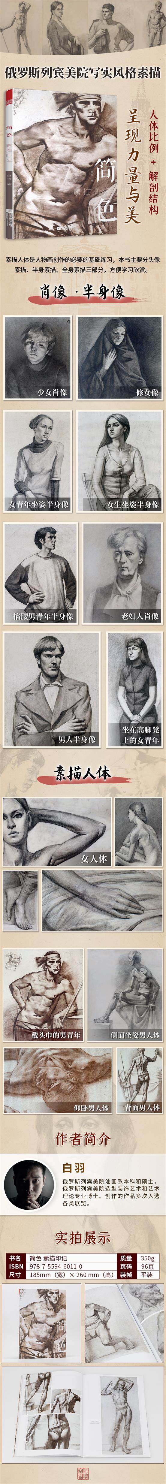 素描人體是人物畫創(chuàng)作的必要的基礎(chǔ)練習(xí)?!逗喩孛栌∮洝芬粫且槐静噬∷⒌?,素描作品欣賞書籍。作者在列賓美院游學(xué)12年,了解列賓美院素描作品風(fēng)格特點(diǎn)。本作品集大概38-40幅素描繪畫作品,作品以人為主要描繪對象。所涵蓋作品主要風(fēng)格是傳統(tǒng)繪畫寫實(shí)風(fēng)格,強(qiáng)調(diào)的是人體解剖結(jié)構(gòu),人體比例和人體力量美學(xué),展現(xiàn)扎實(shí)的人物題材繪畫寫實(shí)能力,體現(xiàn)了俄羅斯當(dāng)代學(xué)院派現(xiàn)實(shí)主義素描。本書主要分為三部分內(nèi)容,一部分為頭像素描、另一部分為半身素描、最后一部分為全身素描。方便讀者進(jìn)行人體素描學(xué)習(xí)。風(fēng)格寫實(shí),鑒賞性較強(qiáng);內(nèi)容豐富,印刷精美;此類作品是造型專業(yè)學(xué)生和專業(yè)畫家的必修課以及重要專業(yè)技能。向讀者傳遞通過素描藝術(shù)展示人體美學(xué)力量和高端專業(yè)素描繪畫藝術(shù)技能。