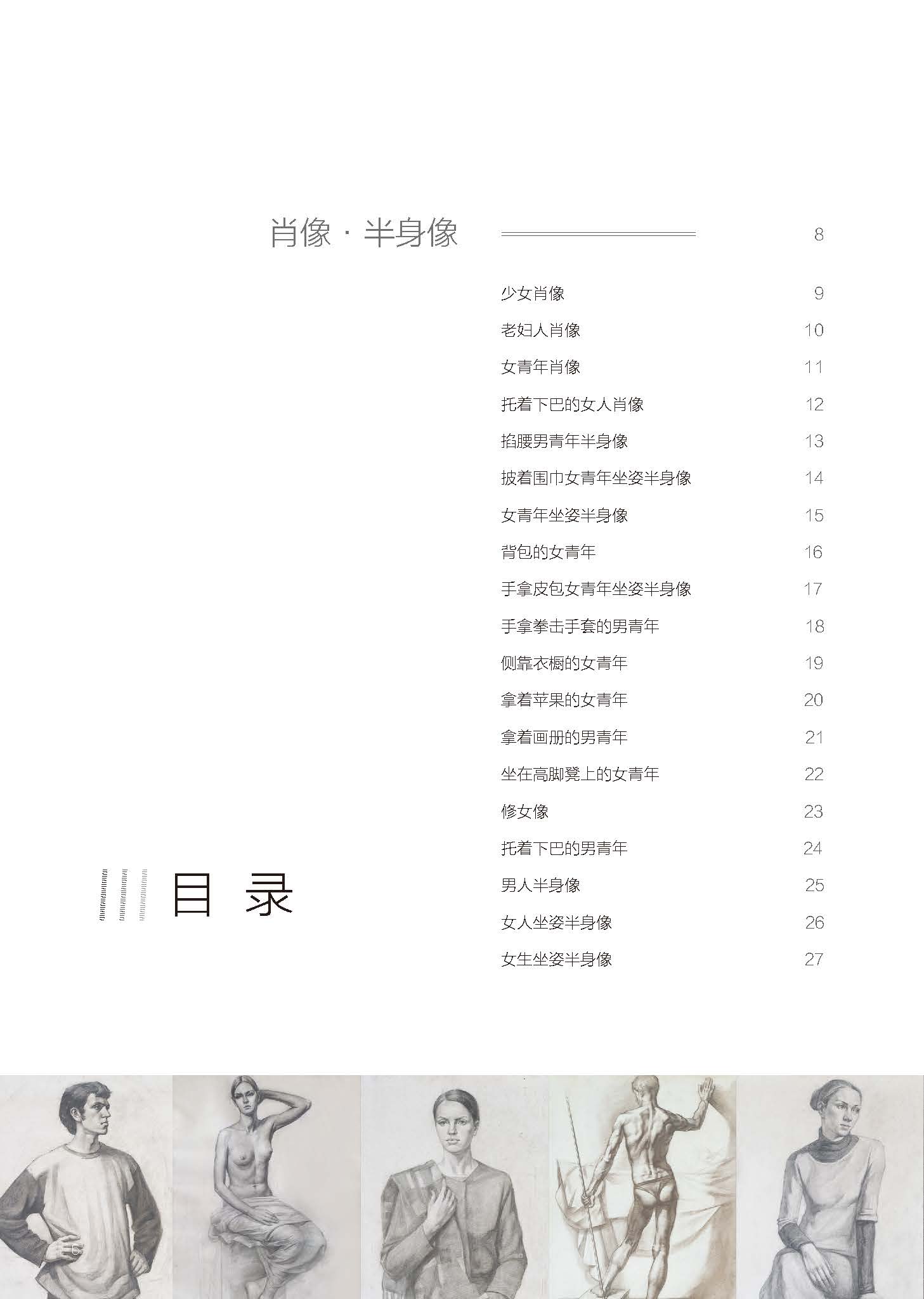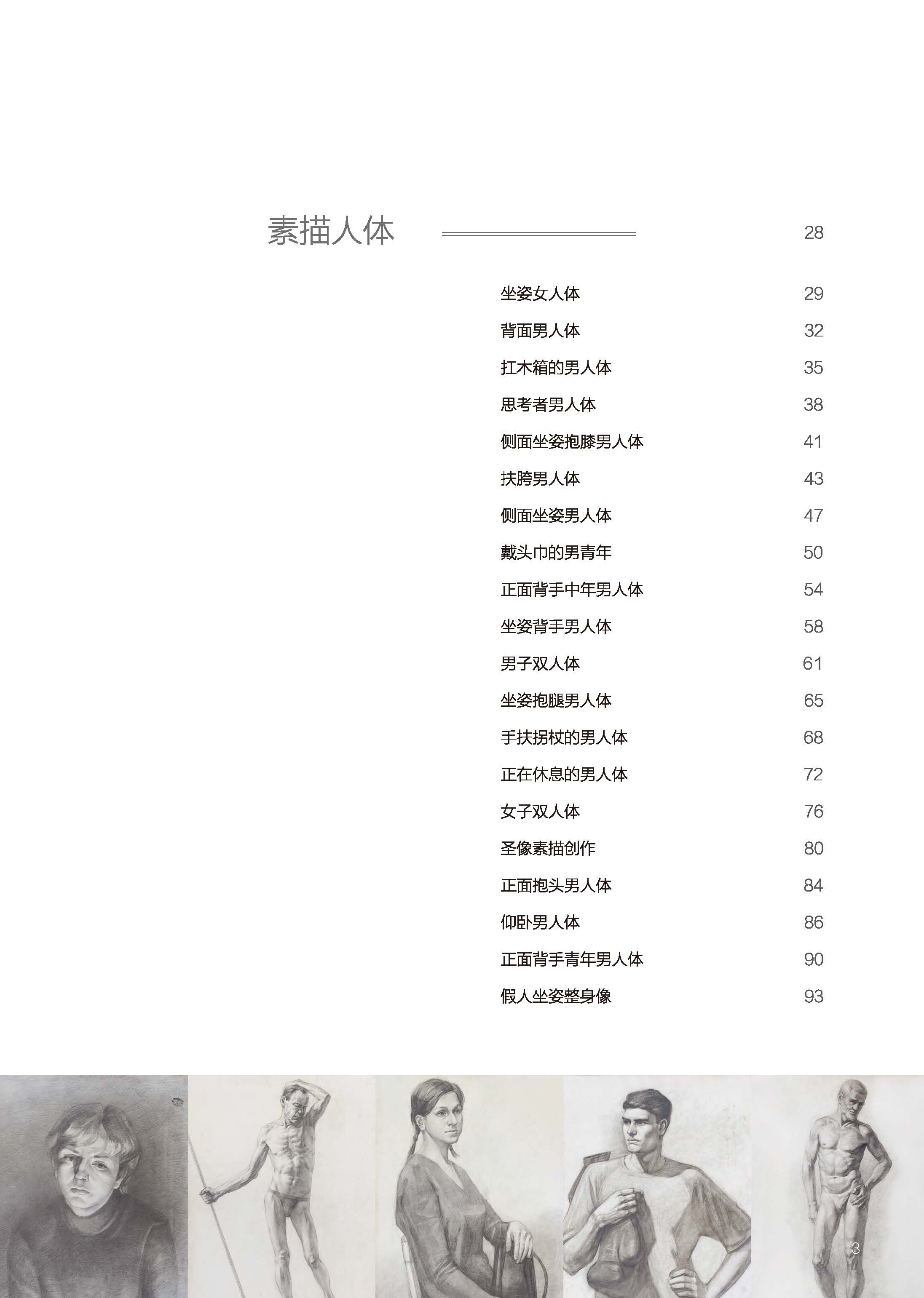 有人說素描是單色畫,也有人說素描是樸素的描繪.但是菲利普?羅森說:“素描是簡色痕跡的藝術(shù)?!笨墒?,簡色素描并非單色素描,這個(gè)觀點(diǎn)可以在眾多繪畫大師的素描作品當(dāng)中得到驗(yàn)證,因此我們要擺脫對素描是單色的誤讀。在列賓美院基礎(chǔ)部素描教學(xué)體系中,多以短期素描為主要教學(xué)手段。短期素描雖然會缺失一些畫面中精益求精的細(xì)節(jié),但是可以訓(xùn)練學(xué)生快速發(fā)現(xiàn)畫面問題的觀察和糾錯(cuò)能力,更有助于學(xué)生敏銳地捕捉人物結(jié)構(gòu)特點(diǎn)、動作肢體透視特點(diǎn)和空間虛實(shí)特點(diǎn),為長期素描訓(xùn)練打下堅(jiān)實(shí)基礎(chǔ)?!逗喩孛栌∮洝芬粫且槐静噬∷⒌?,素描作品欣賞書籍。本作品集大概38-40幅素描繪畫作品。所涵蓋作品主要風(fēng)格是傳統(tǒng)繪畫寫實(shí)風(fēng)格,強(qiáng)調(diào)的是人體解剖結(jié)構(gòu),人體比例和人體力量美學(xué),展現(xiàn)扎實(shí)的人物題材繪畫寫實(shí)能力。