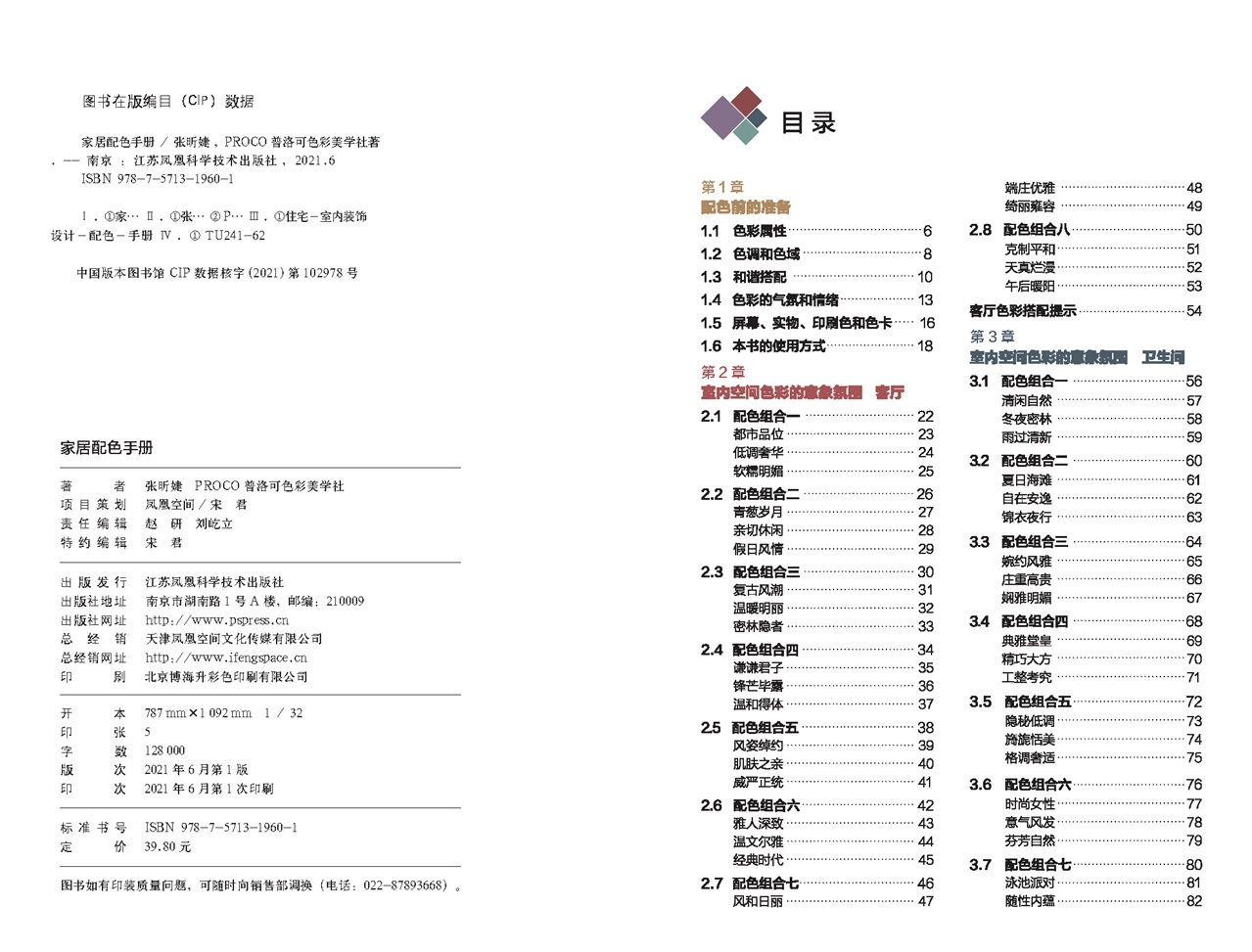 這是一本十分實用的家居配色專用工具書。第一章從色彩屬性、色調(diào)和色域、和諧搭配、色彩的氣氛和情緒、屏幕實物和色卡的區(qū)別、本書的使用方式,六個方面概括講述了配色需要掌握的基礎(chǔ)知識和配色前的準(zhǔn)備工作;第二章至第五章從家居空間中的不同功能區(qū)的特點出發(fā),共給出了32組配色組合,96種色彩情緒,288個配色方案,結(jié)合具體的空間配色圖示,并給出了配色比例和色彩概括印象,使配色實例在視覺和感知上更加簡單易懂,可為讀者帶來豐富的配色靈感與啟發(fā)。在本書最后的配色索引里標(biāo)注了國際通用的潘通色號和RGB色號,設(shè)計師或者業(yè)主可以直接拿來做配色參考。