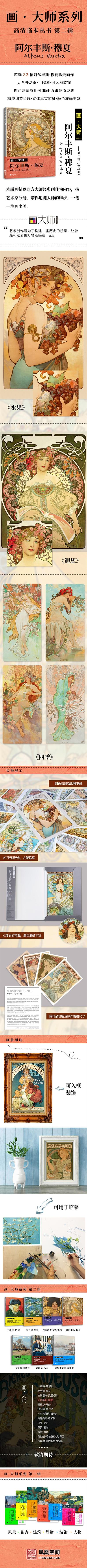 本冊藝術(shù)家為阿爾豐斯?穆夏,精選《露怡餅干》《默茲啤酒》《四寶石》等32幅作品,為拉近讀者與大師的距離,本系列所挑選大師作品力求經(jīng)典。作品選擇內(nèi)容豐富、題材健康、色調(diào)明快、色塊清晰。從而達(dá)到受眾人群廣,從學(xué)生到美術(shù)愛好者,甚至美術(shù)培訓(xùn)機(jī)構(gòu),包括成人和兒童。裝幀形式更便于臨摹學(xué)習(xí)和室內(nèi)空間裝飾,用途廣泛。精美的封盒設(shè)計(jì)、考究的用紙以及高品質(zhì)、高清的印刷也為提升本系列畫帖的品質(zhì)的必要條件。