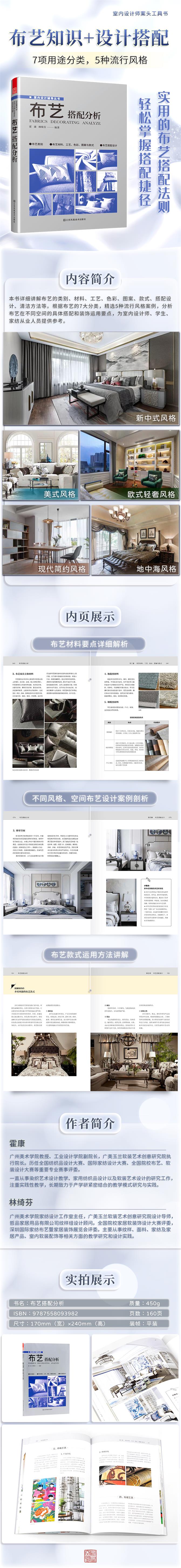 本書知識系統(tǒng),采用圖解案例的方式,根據(jù)布藝的7大分類,用5種流行風(fēng)格,詳細(xì)分析了布藝在不同空間的具體搭配,無疑是給讀者提供了一條掌握室內(nèi)布藝設(shè)計知識的捷徑。