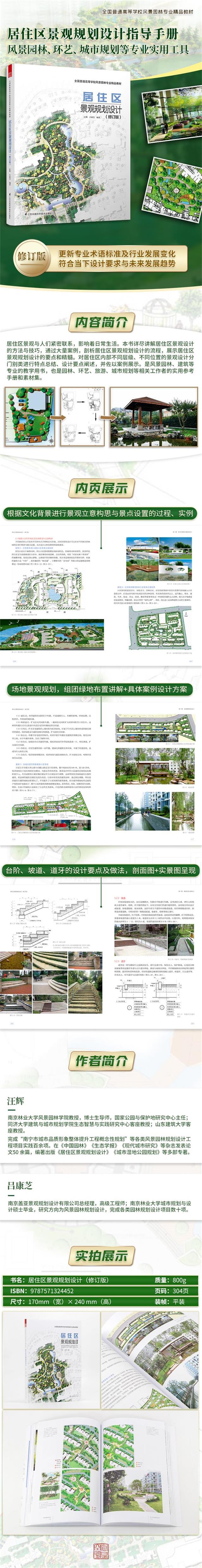 《居住區(qū)景觀規(guī)劃設(shè)計(修訂版)》通過大量的案例和實證,充分解析了居住區(qū)景觀規(guī)劃設(shè)計的流程,展示居住區(qū)景觀規(guī)劃設(shè)計的要點和精髓。對居住區(qū)內(nèi)部的不同層級、不同位置的景觀設(shè)計分門別類的進(jìn)行特點總結(jié)、設(shè)計要點闡述,并佐以案例展示。同時對居住區(qū)景觀設(shè)計得了流程以及每部分所需材料、所做工作都進(jìn)行了詳細(xì)的注解,使讀者對居住區(qū)景觀設(shè)計工作的有了系統(tǒng)化的了解。作者還結(jié)合設(shè)計手法,詳細(xì)介紹了居住區(qū)景觀中的設(shè)施和材料,是學(xué)習(xí)居住區(qū)景觀規(guī)劃設(shè)計的理想教材。