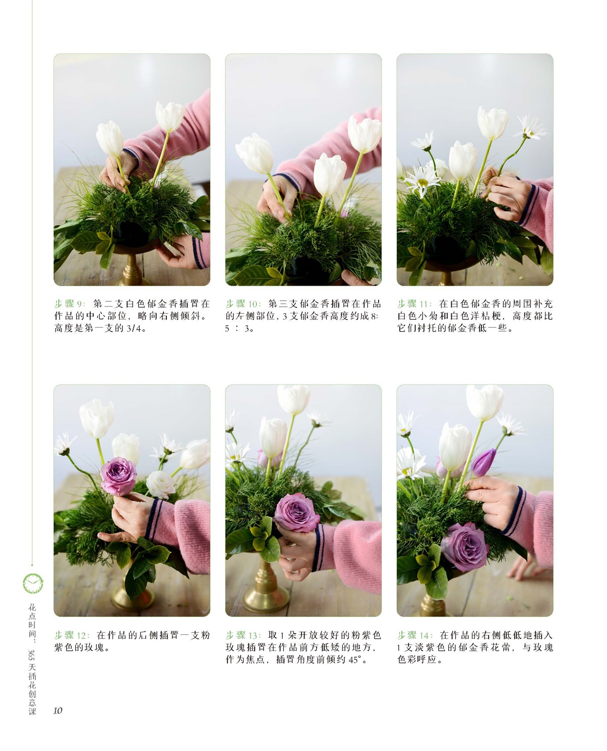 本書以街旁綠化植物、四季常見植物以及鮮花店常見鮮花甚至各色蔬菜等普通的花材物料為材料,制作具有藝術性和觀賞性的插花作品,不僅適用于居家擺放,同時也適用于商業(yè)場所和文化場所。每個作品都對花材、容器、制作步驟有著詳細的解讀;并且本書整體內容編排按照應季的花卉、蔬菜、綠植等植物類型,選取每個時令和節(jié)日所適合的花材進行布置,既符合植物的時令特點,又迎合了該時令應有的節(jié)日氣氛。所有案例操作簡單,取材方便,容易上手,讓讀者用較少的時間和精力制作出高雅美麗的花藝作品。在介紹每個作品的制作步驟前,作者都會通過溫暖的語言傳達出符合時令的氣氛語言以及制作的靈感來源,讓讀者循序漸進地了解花藝概念,喜歡上花藝制作。