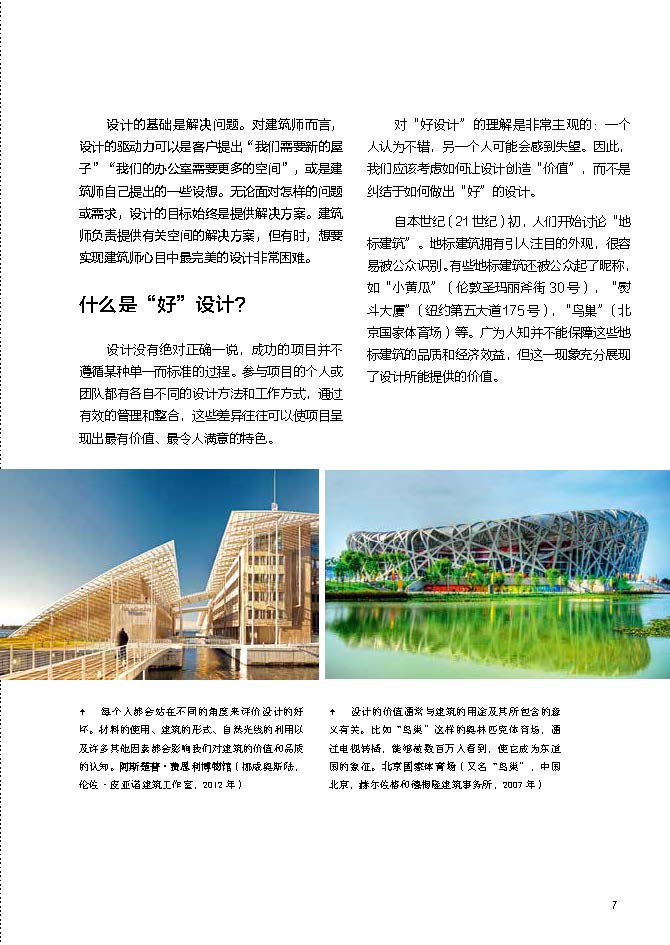 7. 帶你親身體驗(yàn)一個(gè)真實(shí)的設(shè)計(jì)案例、一個(gè)完整的設(shè)計(jì)過程。從制定項(xiàng)目簡介、初步設(shè)計(jì)、深化設(shè)計(jì),到招標(biāo)、重新設(shè)計(jì)、二次招標(biāo),從價(jià)值工程、技術(shù)設(shè)計(jì)到施工設(shè)計(jì),再到室內(nèi)空間的再設(shè)計(jì),然后,投入使用。
