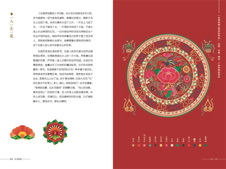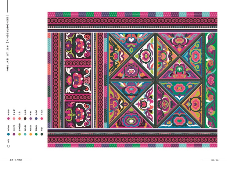 1.中國各民族紋樣歷史悠久,分布廣泛,種類繁多。本套書精選了作者團(tuán)隊(duì)挖掘整理的龍紋、鳳鳥紋、鶴紋、蝴蝶紋等動物紋樣,以及牡丹花紋、八角花紋、蓮花紋、菊花紋等植物紋樣。這23款紋樣,從人間草木,到龍鳳祥瑞,從人口眾多的漢族,到壯族、苗族、滿族等少數(shù)民族,為讀者帶來一副廣闊的紋樣畫卷。