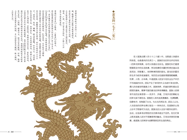 1.中國傳統(tǒng)紋樣歷史悠久,分布廣泛,種類繁多,風格各異。本套書精選了作者團隊挖掘整理的龍紋、鳳鳥紋、鶴紋、蝴蝶紋等動物紋樣,以及牡丹花紋、八角花紋、蓮花紋、菊花紋等植物紋樣。這23款紋樣包羅萬象,精美絕倫,上溯新石器時代,下至明清時期,從一草一木,到龍鳳祥瑞,除了涉及人口眾多的漢族,還有壯族、苗族、滿族等少數民族的大量民間紋樣,為讀者帶來一副廣闊的紋樣畫卷。