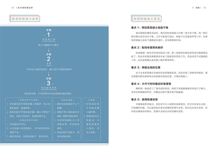 以空間內(nèi)部6個(gè)板塊(頂面、地面、墻面、照明、涂料和定制家具)講解室內(nèi)裝修施工的流程及要點(diǎn),并對裝修中常見問題進(jìn)行解答。