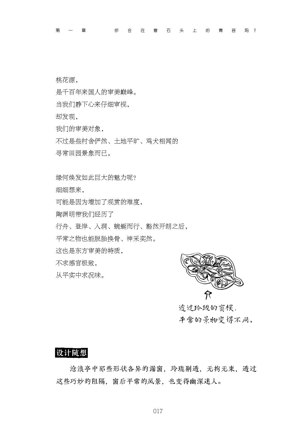 本書的開篇聚焦于古老東方的審美傳統(tǒng),從古詩文中發(fā)掘文人雅士如何運(yùn)用花、石、草、木等自然材料構(gòu)建出“方寸之內(nèi)有乾坤”的庭院景觀,寄托自己的情思與志向。然后將視角轉(zhuǎn)向庭院營造的邏輯理念,分析其背后隱藏著的房子與自然、與生活之間的關(guān)系。再從人類共通的基本需求入手,分析一些古而有之的建筑景觀,現(xiàn)代獨(dú)特的藝術(shù)設(shè)計(jì)是如何迎合并滿足這些基本需求的。結(jié)尾則選取若干當(dāng)代知名的建筑師及其設(shè)計(jì)理念,從細(xì)處入手拆解這些理念背后對美的表達(dá)方式。