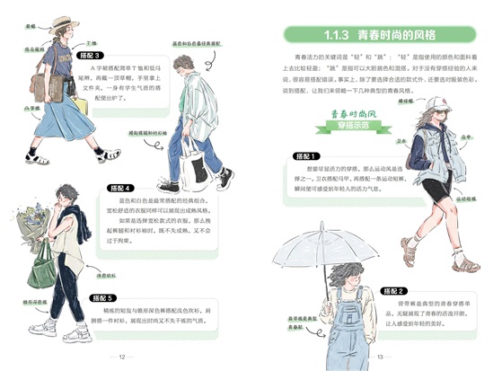 本書以日常穿搭為切入點(diǎn),全書一共分為5章:di1章介紹了人設(shè)定位,并列舉了不同風(fēng)格的穿搭方式;第2章介紹了穿搭的基礎(chǔ)知識(shí),首先是常見(jiàn)的形體,有H形、A形、X形、V形,其次是色彩的分類,包括同類色、對(duì)比色、鄰近色、互補(bǔ)色、無(wú)彩色等,掌握這些知識(shí)后,讀者可量身定制,找到適合自己的服裝款式和色彩搭配;第3章聚焦于衣櫥的單品,主要介紹了各類單品的穿搭公式和技巧;第4章介紹了6種不同場(chǎng)景的穿搭方式;第5章通過(guò)一些穿搭故事,為讀者深化了從基礎(chǔ)理論到實(shí)踐運(yùn)用的穿搭技巧。全書采用手繪插圖,內(nèi)容精彩,版式靈活且清晰,能讓你一看就懂,一學(xué)就會(huì),輕松掌握穿搭技巧??梢哉f(shuō),本書不僅是一本提供穿搭技巧和靈感的書,還是一本充滿故事的穿搭書,適合零基礎(chǔ)的讀者入門日常穿搭。