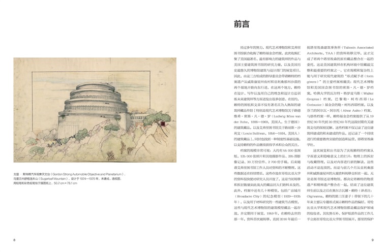 2017年,紐約現(xiàn)代藝術(shù)博物館舉行了賴特誕辰紀(jì)念展,本書是同期的出版物。這本書是展覽的延伸和深化,匯集眾多學(xué)者的研究成果和評述性文字,在多學(xué)科視閾下對賴特進(jìn)行研究,超越了建筑本身,從全新的角度看待賴特與其建筑,為賴特研究注入了新觀點(diǎn)、開辟了新視角。