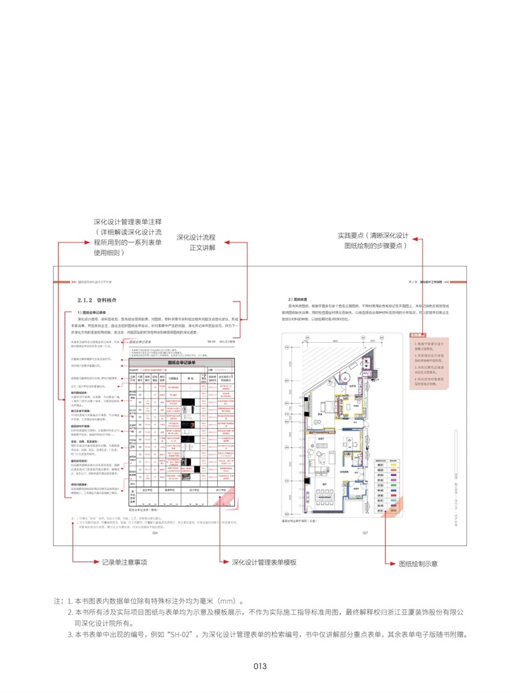 本手冊系統(tǒng)闡述了裝飾深化設(shè)計工作的標準流程,總結(jié)歸納深化設(shè)計在裝飾工程全過程中的六項關(guān)鍵階段,貫穿項目全周期。根據(jù)大量深化設(shè)計項目的經(jīng)驗積累,沉淀深化設(shè)計成果與數(shù)據(jù),通過工具表單、標準樣圖及案例說明來詳細講解項目各階段每一個深化標準動作,指導(dǎo)一線深化設(shè)計人員把深化設(shè)計做好;同時協(xié)助項目深化負責人進行動態(tài)管控,共同把深化設(shè)計做強。