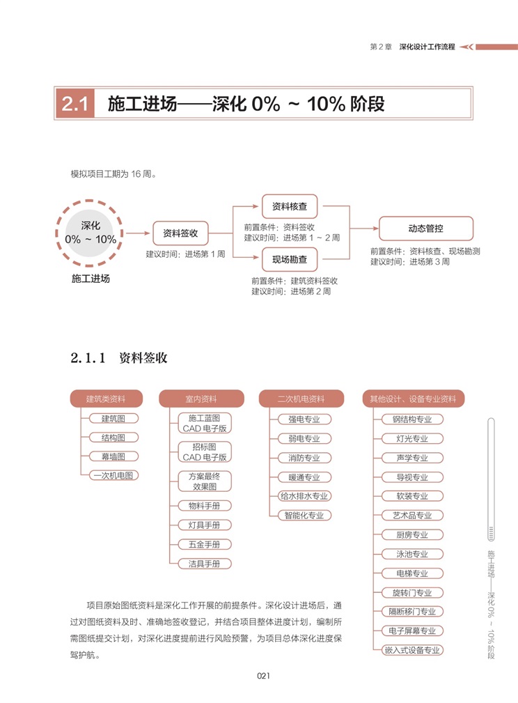 5.直擊施工進場、放線配合、綜合布點、下單圖審、動態(tài)調(diào)整和竣工資料六大管控節(jié)點,規(guī)范深化設(shè)計工作流程,歸納深化設(shè)計質(zhì)量通病與防范,輕松掌握深化施工全流程。