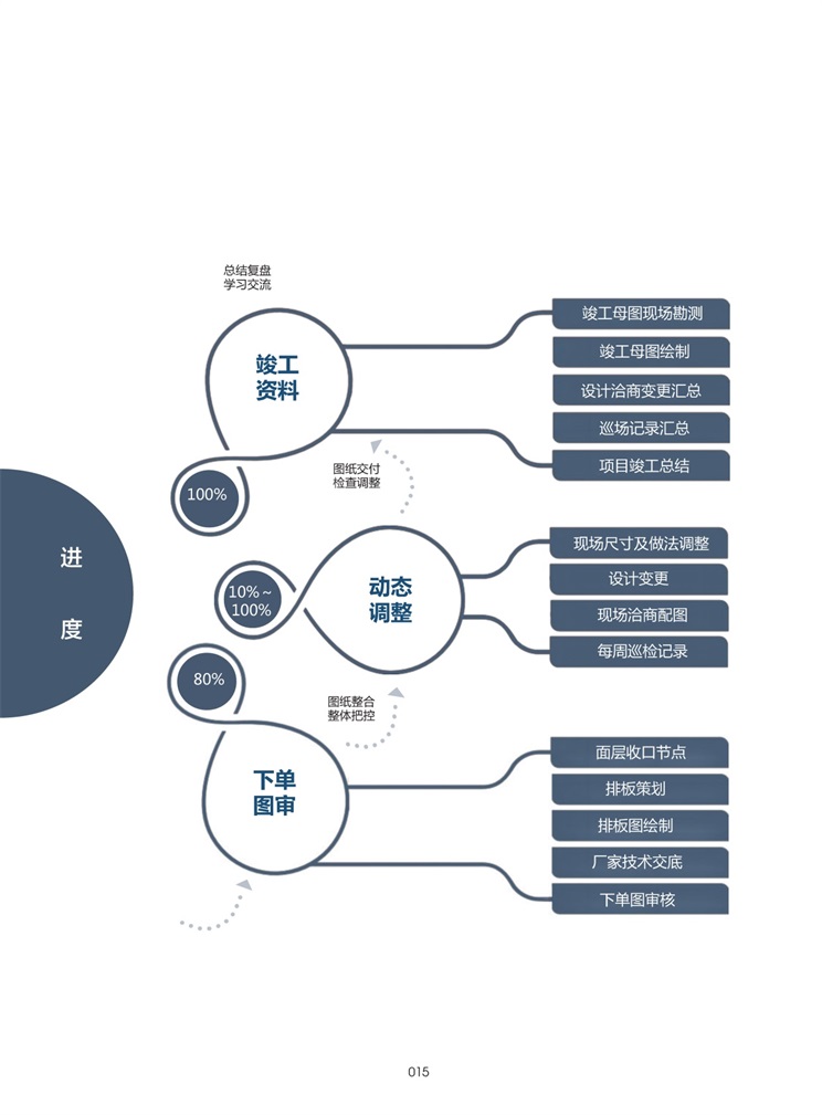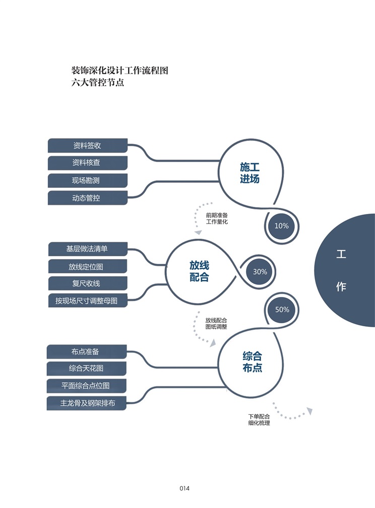 深化設(shè)計是裝飾工程項目中的重要環(huán)節(jié)。其內(nèi)容是在各專業(yè)設(shè)計資料提供現(xiàn)場,完善技術(shù)圖紙、現(xiàn)場技術(shù)指導(dǎo),協(xié)調(diào)配合各專業(yè)單位,減少項目不必要的成本與工期浪費,保證落地質(zhì)量與效果滿足業(yè)主要求,充分發(fā)揮項目從設(shè)計到落地的“中場發(fā)動機”作用。