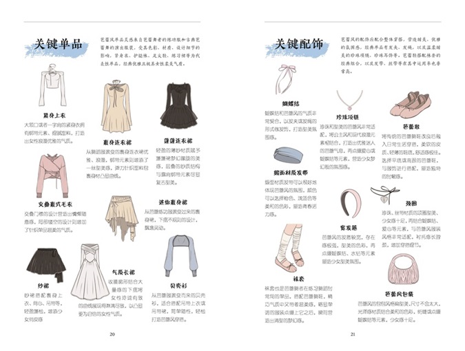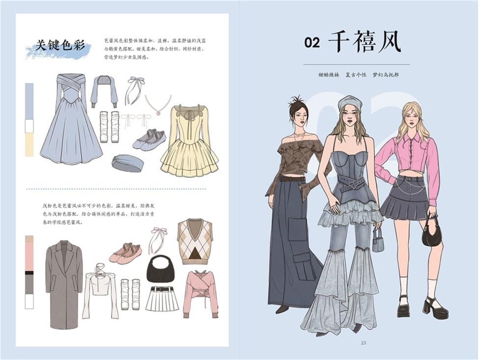 在此基礎(chǔ)上,書(shū)中進(jìn)一步解析時(shí)裝造型風(fēng)格,如芭蕾風(fēng)、老錢(qián)風(fēng)、酷颯御姐風(fēng)、甜酷新中式風(fēng)等,結(jié)合風(fēng)格調(diào)性、關(guān)鍵單品、生活場(chǎng)景、色彩建議與搭配技巧,指導(dǎo)讀者如何將人物風(fēng)格與造型風(fēng)格進(jìn)行匹配,打造適合自己的穿搭方案。