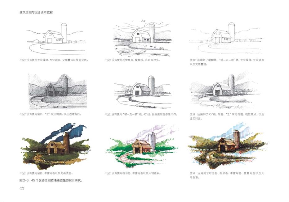 本書是一本教授建筑手繪表現(xiàn)與技法的實(shí)用性圖書。開篇就談到了繪畫的心態(tài),再從使用工具、繪制線稿到上色,介紹了不同的繪畫技巧和表現(xiàn)手法,將每種繪畫的效果用豐富的實(shí)例展現(xiàn)出來,由淺入深,從原理到實(shí)踐,使讀者能夠?qū)ㄖ臻g草圖繪畫有一個系統(tǒng)的認(rèn)知。本書分為九個章節(jié):涉及繪圖狀態(tài)、繪圖原則、表現(xiàn)技法、表現(xiàn)形式、文字書寫等,包含45個繪圖原則和27種表現(xiàn)方式。書中擁有近400張彩色插圖,精選了大量作品進(jìn)行分析展示,將設(shè)計方法完整展現(xiàn),圖文清晰,內(nèi)容詳細(xì)。