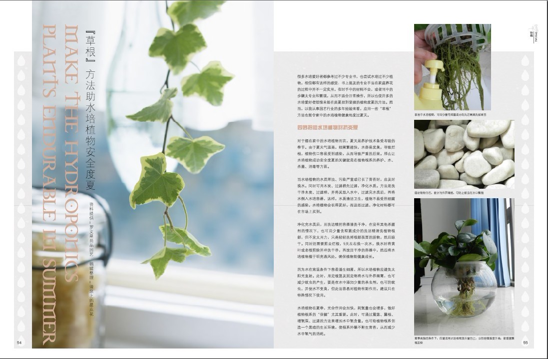 This issue of Horticulture Home is all about water and hydroponic plants, which is rare on the market. From the beginning we are benefited a lot from experts’ suggestion and help, so the quality and veracity of this issue could be guaranteed. The theme of this issue is set as “Green Word of Water”. Simply speaking, this issue gives the introduction of water and hydroponic plants for families, including the skills and experience of plants’ caring and growing. Further, this issue turns the professional and horticultural knowledge into easy-understanding articles, also some other interesting plants and latest information is added, which enhance the issue’s attraction.