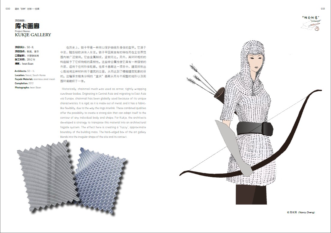 這本書圍繞建筑立面材質——金屬,從材質歷史、代表案例兩方面,介紹了材質的理論和實踐。大量精美的手繪稿和細節(jié)圖片,以及詳盡的圖注最直觀地為您提供立面“個性化設計”的方案。讀者可以以極大的興致和輕松的氛圍全面領略建筑界的這場“時裝”運動。