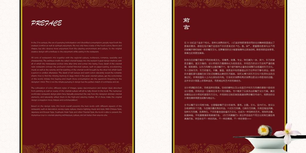 本書(shū)輯錄了眾多杰出的餐廳設(shè)計(jì)方案,真實(shí)地展現(xiàn)出設(shè)計(jì)師如何提取東方文化,并將其貼切地反映到高端消費(fèi)的餐飲市場(chǎng)中,將原創(chuàng)的設(shè)計(jì)理念演繹得更加成熟與商業(yè)化。包括中式東方風(fēng)情、東南亞海島風(fēng)情、日韓東方風(fēng)情、別樣?xùn)|方風(fēng)情四個(gè)部分。