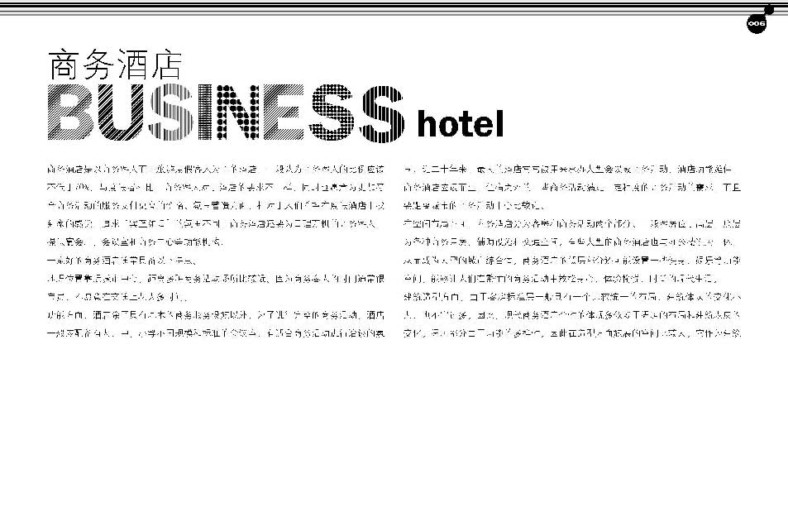 《酒店字典》從多角度將目前國(guó)際上著名的各大酒店進(jìn)行風(fēng)格劃分和整理,通過這種收集整合,形成一個(gè)酒店建筑的合集,為包括設(shè)計(jì)師在內(nèi)的讀者查閱、參考與借鑒其中的設(shè)計(jì)手法提供了極大的便利,是一本真正意義上的工具參考書。