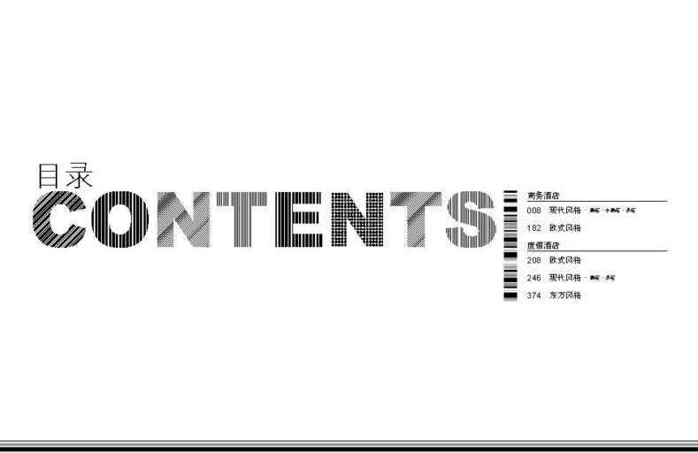 1. 本書創(chuàng)新地將各種酒店設(shè)計(jì)按照風(fēng)格編纂成字典的形式,而且子目錄設(shè)置詳細(xì),極其便于查閱。