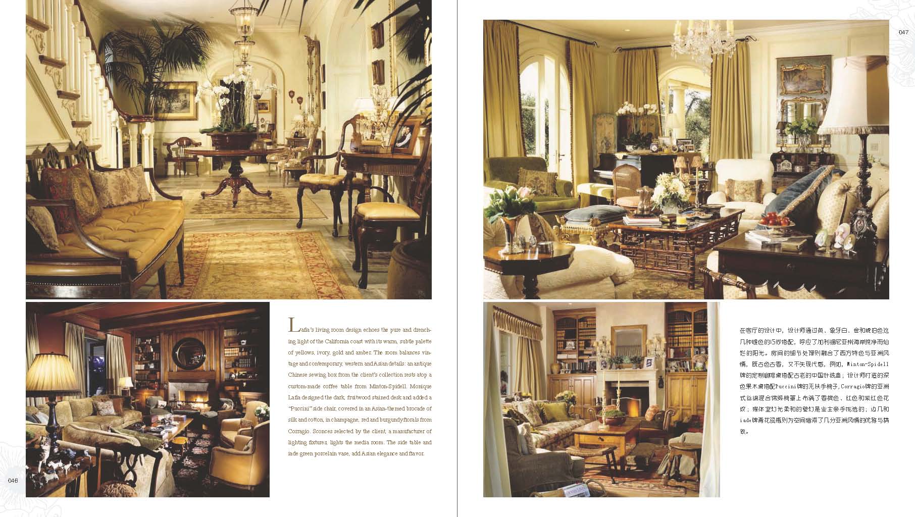 《戀戀鄉(xiāng)村風(fēng)》一書收集了幾十個來自歐美的鄉(xiāng)村風(fēng)格案例,其中不乏像Timothy Corrigan、Jamie Drake和Kelley Proxmire這樣知名的設(shè)計師和獲獎大戶,案例均為原汁原味的鄉(xiāng)村風(fēng)格別墅和豪宅,裝飾細(xì)節(jié)多而且精細(xì)。本書按照“英式鄉(xiāng)村”、“美式鄉(xiāng)村”、“法式鄉(xiāng)村”和“現(xiàn)代鄉(xiāng)村”四種鄉(xiāng)村風(fēng)格的分支制作了案例索引,并且每個案例都有特征說明。