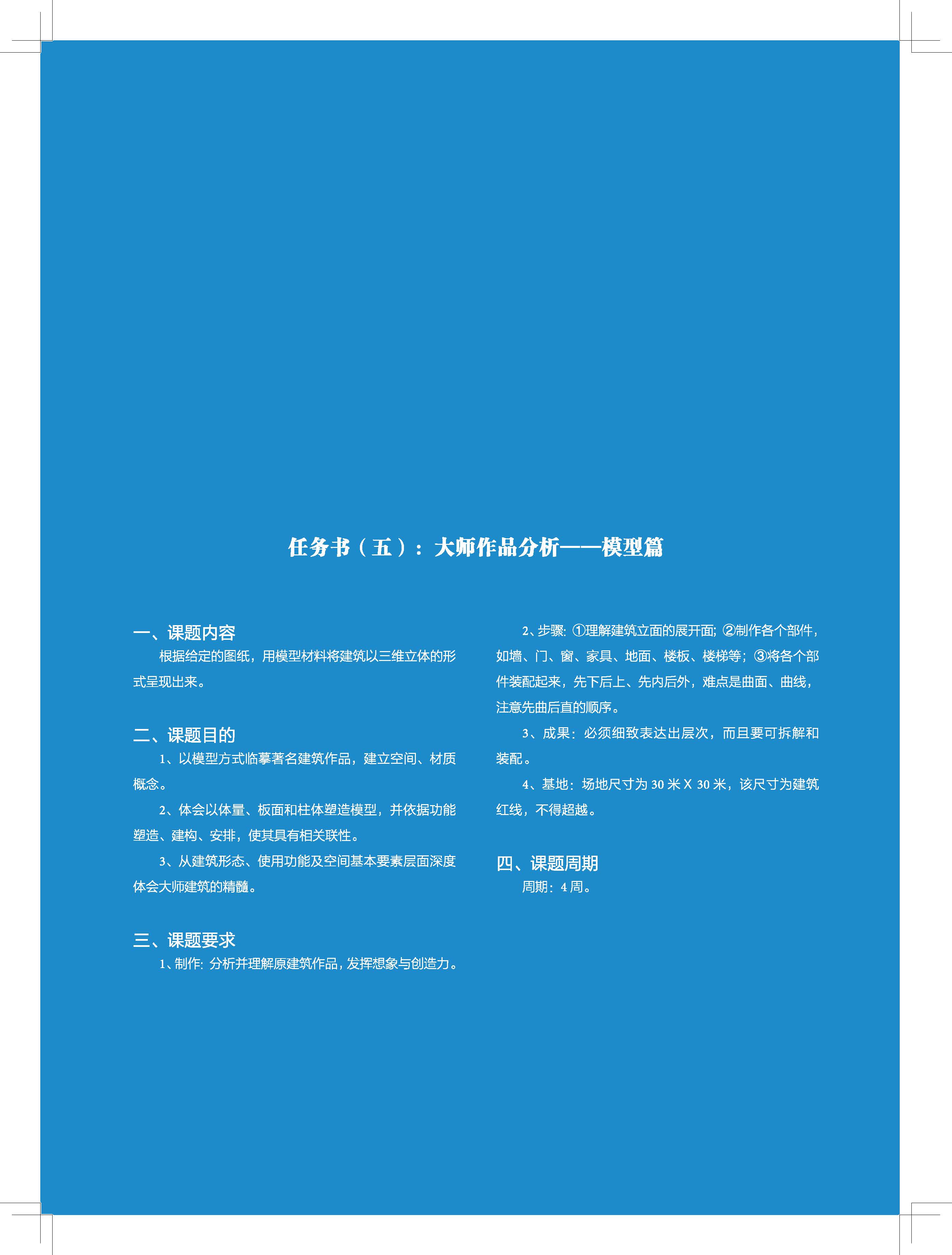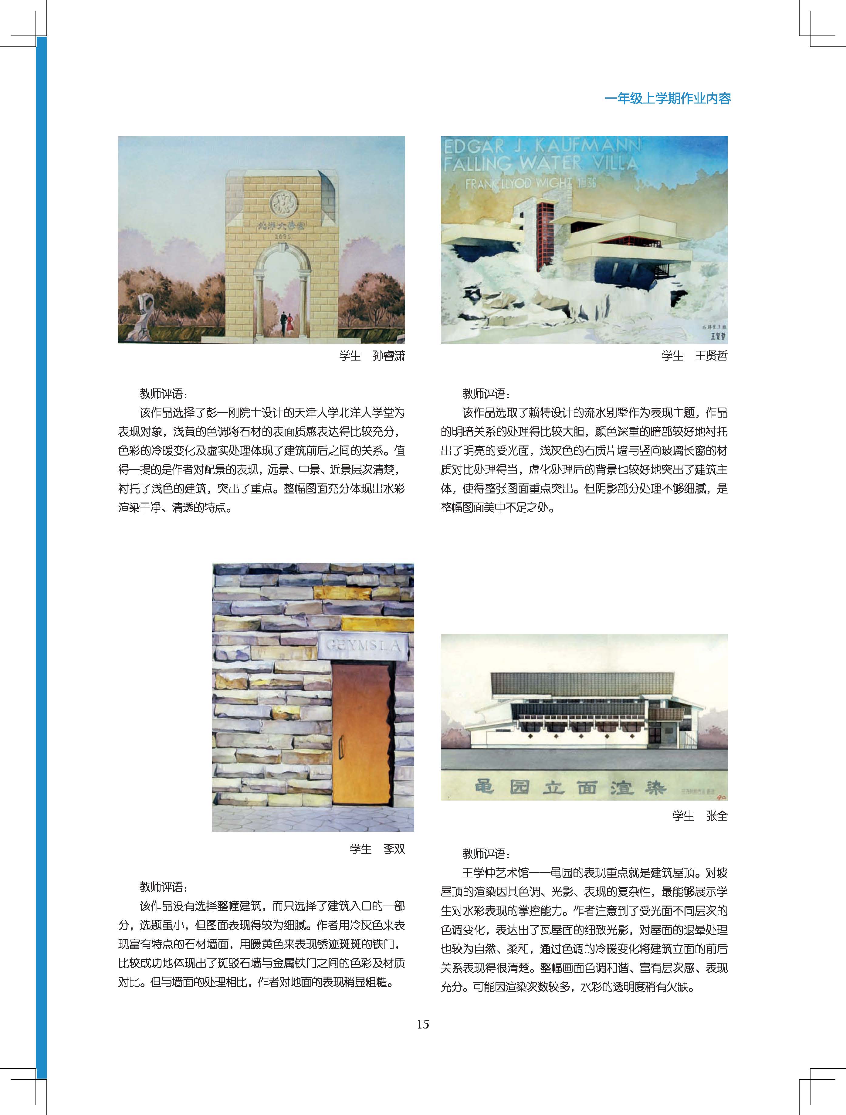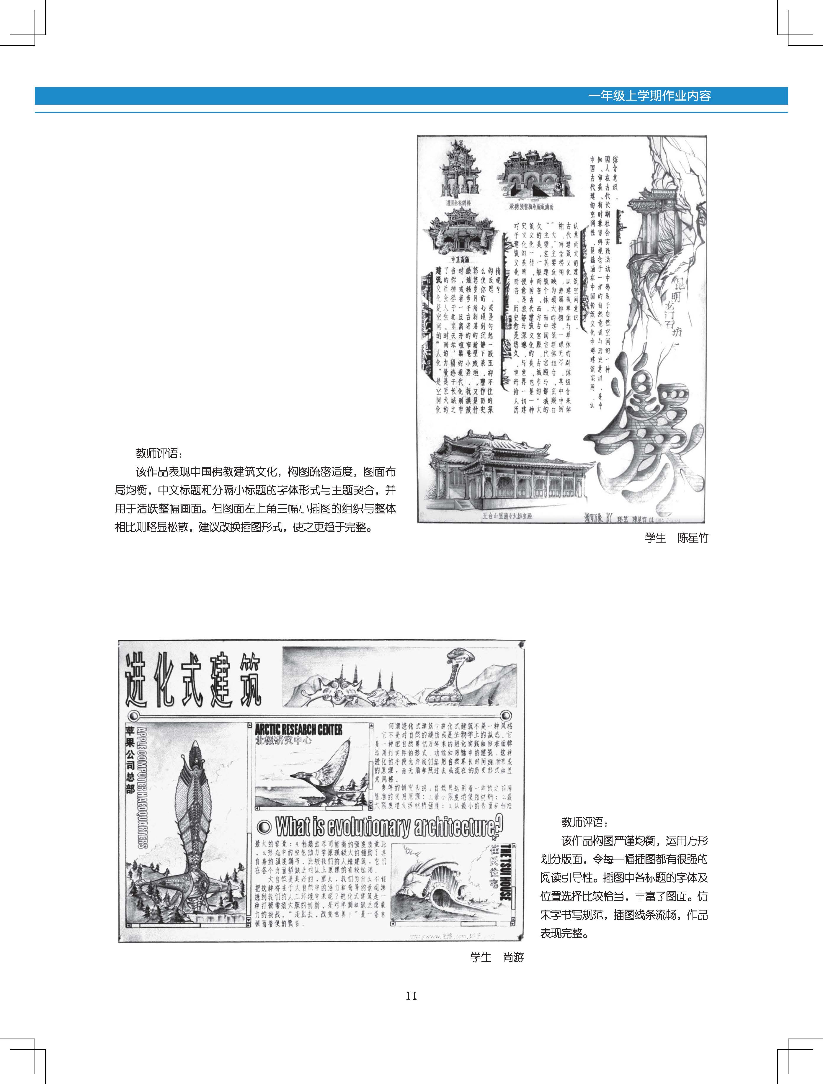 本書包括一年級作品點評和二年級作品點評兩部分,一年級的第一學期的課程主要注重對學生傳統(tǒng)技能的訓練、建筑知識體系的建立、學生建筑背景知識的完善、良好的學習方法和學習習慣的培養(yǎng),并且強調(diào)對學生創(chuàng)新能力的激發(fā)。第二學期以空間為主題,通過一系列由簡單到復雜、由概念性空間到實用性空間的創(chuàng)造過程,更注重對學生的空間想象和塑造能力的啟發(fā)、模型手段運用的強化、三維對應關系的建立,培養(yǎng)學生的空間創(chuàng)造潛能和初步設計的基本技能、創(chuàng)新思維意識。二年級的課程主要以建筑方案設計為主,室內(nèi)設計、景觀設計元素認知為輔。