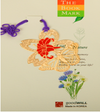 韓國Goodwill書簽采用24K鍍金,造型獨(dú)特多變,刺繡、鏤空打造,通透細(xì)致,薄如蟬翼,精細(xì)質(zhì)感?;?、葉、昆蟲等鮮活的姿態(tài)與生動(dòng)的顏色被精美地定格在書簽里,讓您在書香四溢中呼吸自然的氣息,陪你在歲月中長久的感動(dòng)。