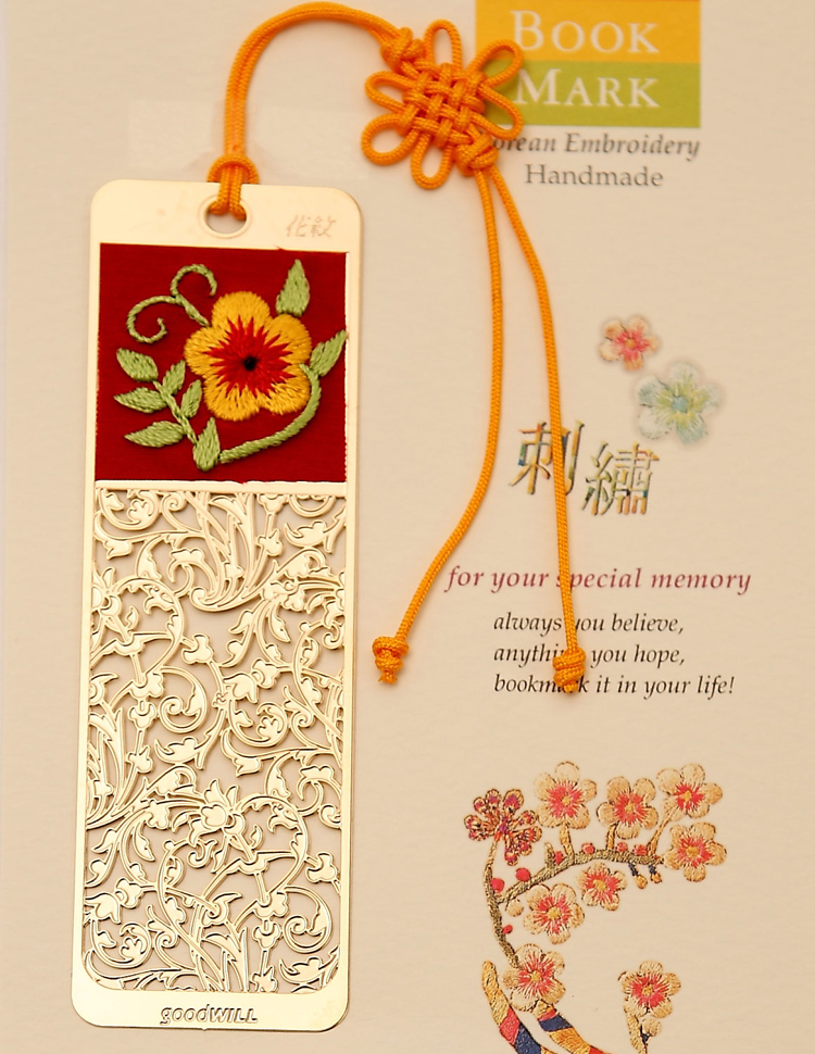 韓國(guó)Goodwill書簽采用24K鍍金,造型獨(dú)特多變,刺繡、鏤空打造,通透細(xì)致,薄如蟬翼,精細(xì)質(zhì)感?;ā⑷~、昆蟲等鮮活的姿態(tài)與生動(dòng)的顏色被精美地定格在書簽里,讓您在書香四溢中呼吸自然的氣息,陪你在歲月中長(zhǎng)久的感動(dòng)。