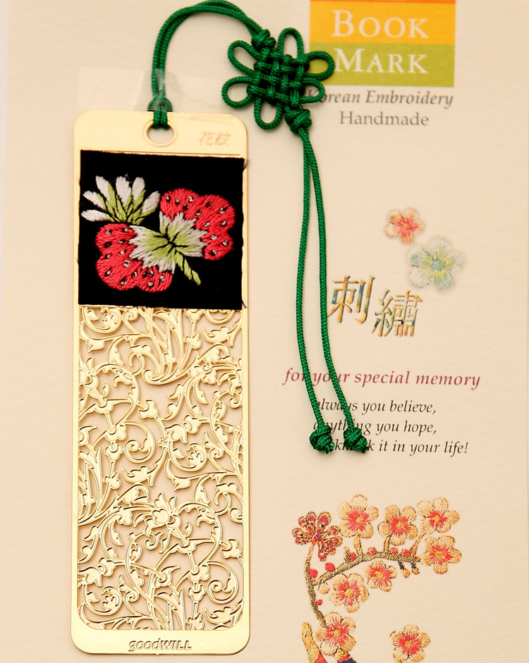 韓國Goodwill書簽采用24K鍍金,造型獨(dú)特多變,刺繡、鏤空打造,通透細(xì)致,薄如蟬翼,精細(xì)質(zhì)感?;?、葉、昆蟲等鮮活的姿態(tài)與生動(dòng)的顏色被精美地定格在書簽里,讓您在書香四溢中呼吸自然的氣息,陪你在歲月中長久的感動(dòng)。