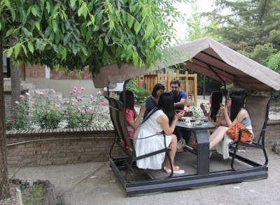 院中央的長桌上,擺著各種各樣的美食,紅酒、壽司、沙拉、點心、品種多樣的烤串,陶餐廳的大廚在旁提供著周到的服務(wù),樂莫樂兮新相知,三三兩兩地聊著天,或在小亭中,或在茅廬中,或在秋千上......把酒言歡,談意頗濃,大有相見恨晚之意,一直持續(xù)晚上九點左右才正式結(jié)束, 狂歡的時刻總是短暫的,但那份快樂的記憶永不消失。