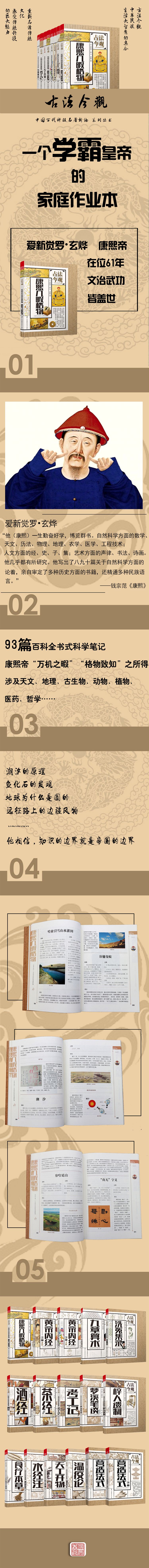 古代帝王給我們留下的文化遺產(chǎn)中,除了建筑遺跡外,更多是他開疆辟土、獲取天下、治理天下的策略和過程的文字資料。眾所周知,我國古代重文輕理,帝王們留下的大都是文史典籍,科普典籍非常少有。被稱為“千古一帝”的康熙皇帝,在閑暇時,卻用筆記的形式,對一些科學(xué)文化現(xiàn)象進(jìn)行調(diào)查、實驗,其中有不少獨到的見解,內(nèi)容涉及天文、地理、古生物、動物、植物、醫(yī)藥、哲學(xué)等各個門類—— 一代帝王有這樣的科學(xué)探索經(jīng)歷是非常罕見的。