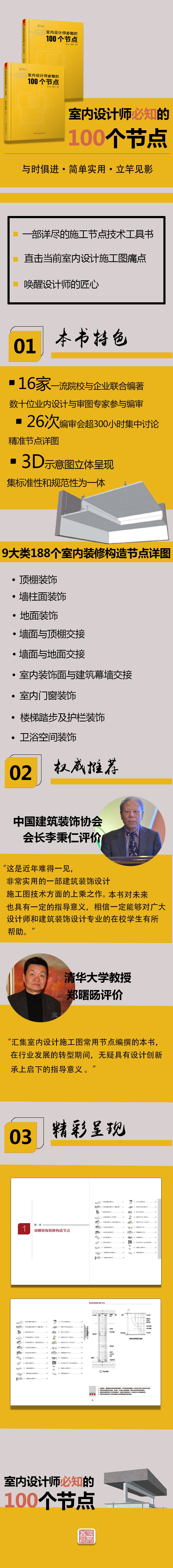 在中國經(jīng)濟發(fā)展進入新常態(tài),建筑裝飾設計領域轉(zhuǎn)型升級的大背景下,由北京市建筑裝飾協(xié)會、北京建筑裝飾設計創(chuàng)新產(chǎn)業(yè)聯(lián)盟及北京超限建筑科技發(fā)展有限公司聯(lián)合策劃編寫的《室內(nèi)設計師必知的100 個節(jié)點》一書的問世如三月的一縷春風迎面撲來。