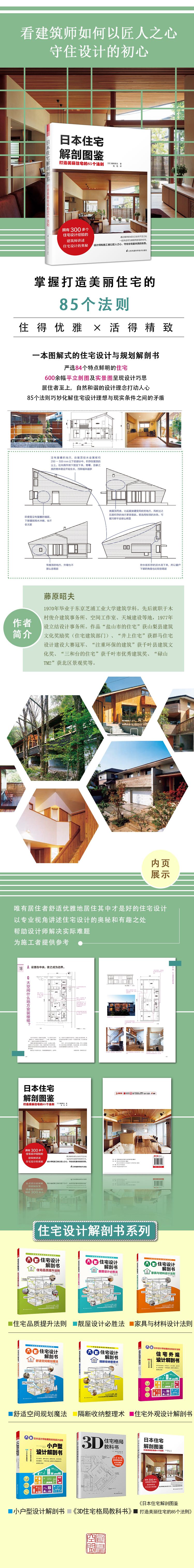 書(shū)中600余幅平面、立面、剖面圖及實(shí)景圖片展示住宅布局、建筑材料、室內(nèi)陳設(shè)及建筑外觀等細(xì)節(jié),文字解說(shuō)點(diǎn)明影響住宅設(shè)計(jì)的要素、解決用地困難和滿足委托人需求的方法。84個(gè)案例凝結(jié)了作者及設(shè)計(jì)團(tuán)隊(duì)多年的實(shí)踐成果和以人為本、自然和諧的設(shè)計(jì)理念,此外,作者還坦言設(shè)計(jì)中的一些不足之處。這些寶貴的設(shè)計(jì)經(jīng)驗(yàn)可以幫助設(shè)計(jì)師解決難題,為施工者提供參考,更可以為想要自己建造住宅的人們提供靈感。