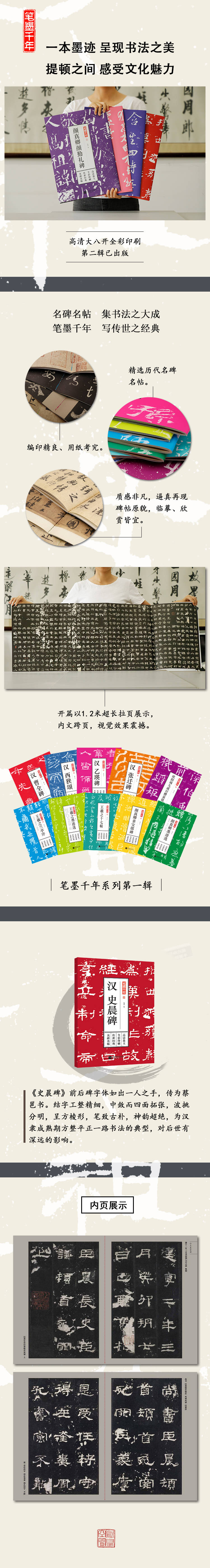 2、本系列精選歷代名碑名帖40余種,大八開(kāi)全彩印刷、高清放大、編印精良,逼真再現(xiàn)碑帖原貌。