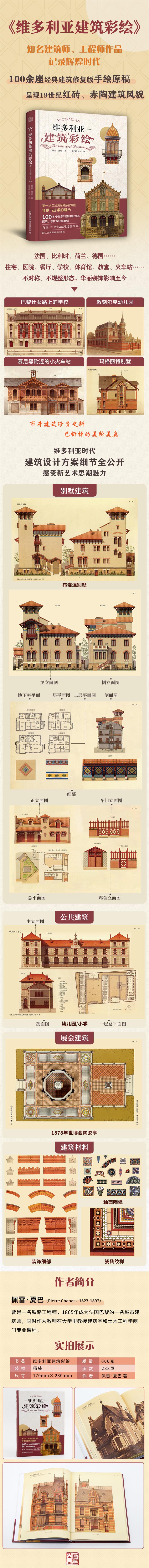 本書是由十九世紀(jì)法國建筑設(shè)計(jì)師Pierre Chabat的關(guān)于維多利亞式建筑的手繪畫作編譯而成,通過對手繪圖紙的展示,展現(xiàn)了維多利亞時(shí)期的建筑的不同風(fēng)格類型以及新興的建筑材料,圖片精美,細(xì)節(jié)細(xì)致入微,展現(xiàn)了工業(yè)革命對建筑和城市的影響。本書還收入了世界博覽會的展覽建筑,為了解19世紀(jì)歐洲建筑發(fā)展歷程提供了豐富的資料。