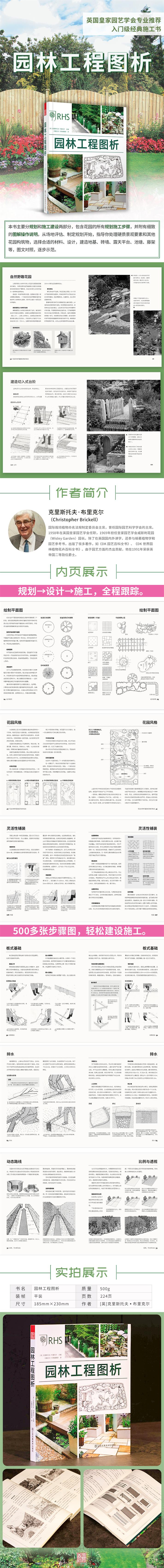 書中內(nèi)容主要分為兩大部分——規(guī)劃與施工建設(shè)。第一部分是由打造花園首先需進(jìn)行的工作入手,對場地進(jìn)行調(diào)查和全方位評估,制定花園規(guī)劃;第二部分是關(guān)于如何處理硬質(zhì)景觀要素和其他花園構(gòu)筑物,指導(dǎo)我們選擇合適的材料和設(shè)計,例如園路鋪面的鋪設(shè)方法,如何建造地基、磚墻、露天平臺、池塘和藤架等。