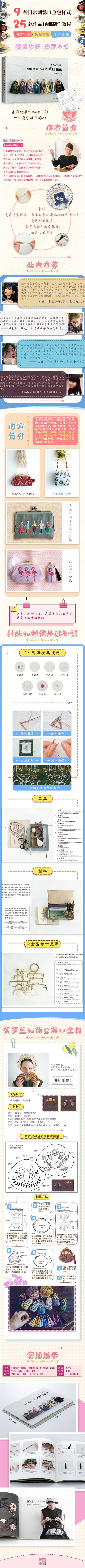 《刺繡入門教程:樋口愉美子的刺繡口金包》是一本刺繡和口金包結(jié)合的手工類書籍。本書主要分為兩部分內(nèi)容,成品展示及案例的具體制作內(nèi)容。本書的特點是將復(fù)雜的刺繡簡約化,在亞麻布和棉布為底部的基礎(chǔ)上的刺繡,手法簡單易懂,簡單的刺繡針法就可在較短的時間內(nèi)做出一幅精美的作品。全書作者運用9種大小型號不同的口金包,配合簡單的刺繡作品,制作出25種風格各異的口金包作品,圖案以動物和植物為主題,配合可愛的人物圖案。25種作品的制作方法都有詳細的講解過程。對布料配色也有講解,本書每個案例都有原大紙型、原大圖案、簡單的配色和基礎(chǔ)針法,即使是初學(xué)者也可輕松上手。